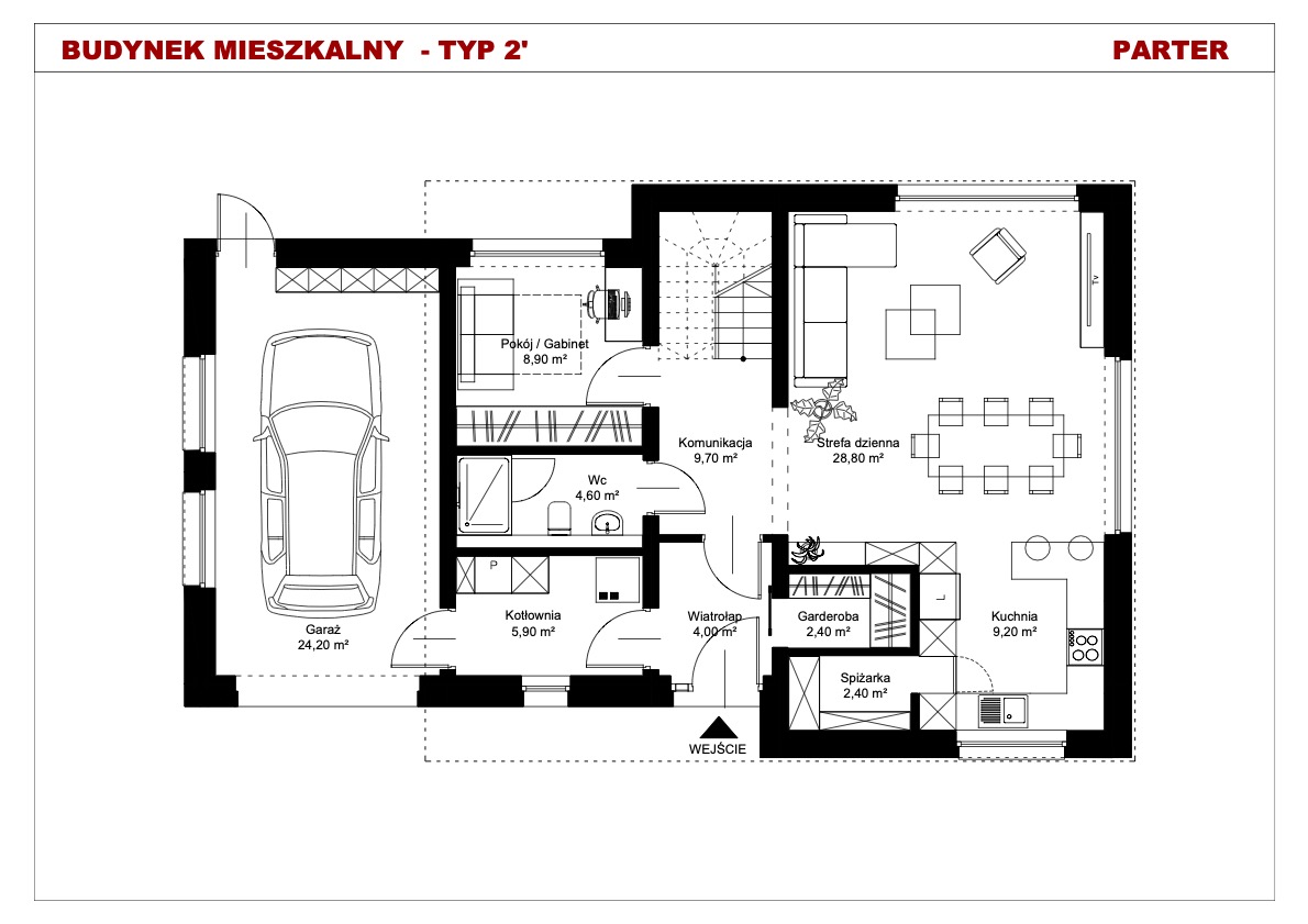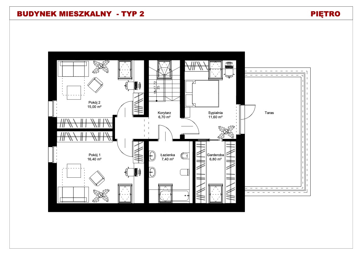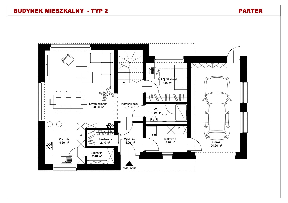 • 8 domów wolnostojących dwukondygnacyjnych – powierzchnia całkowita 164 m²