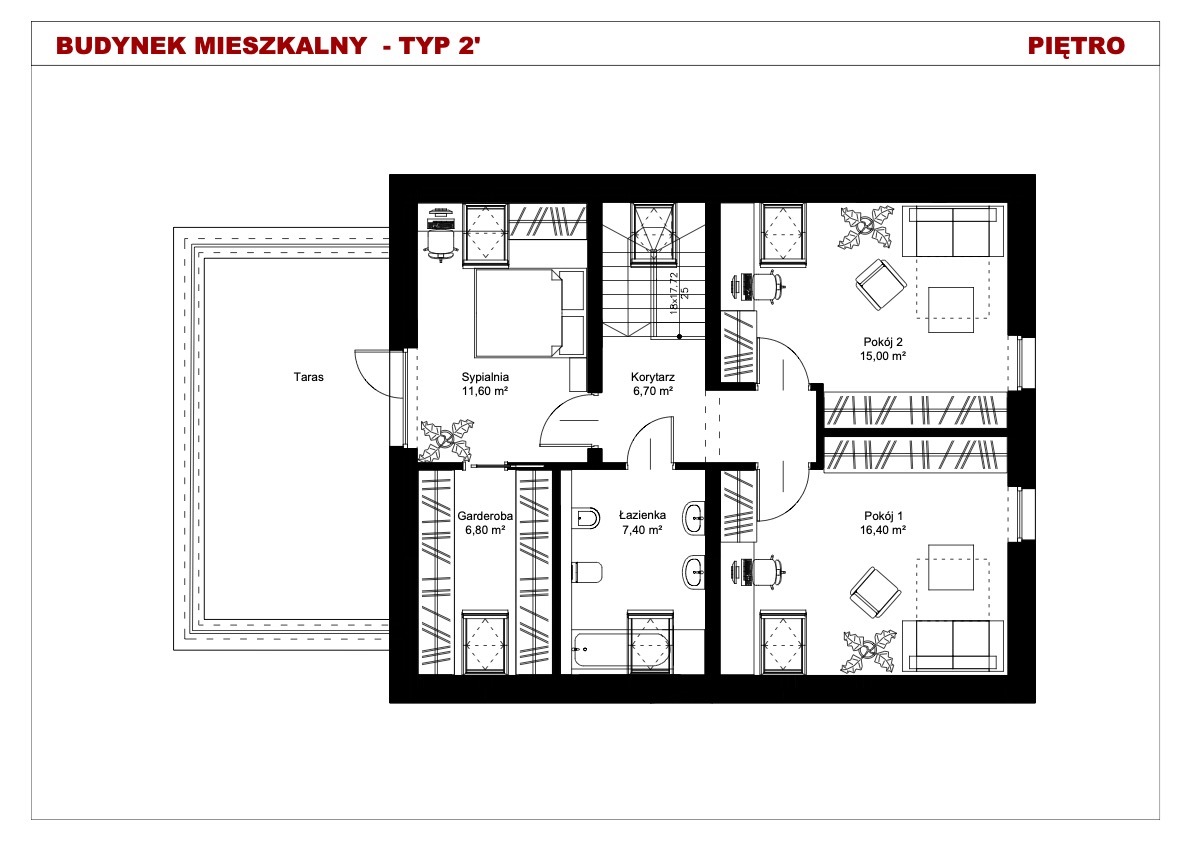 • 4 domów parterowych – powierzchnia całkowita 134,63 m²