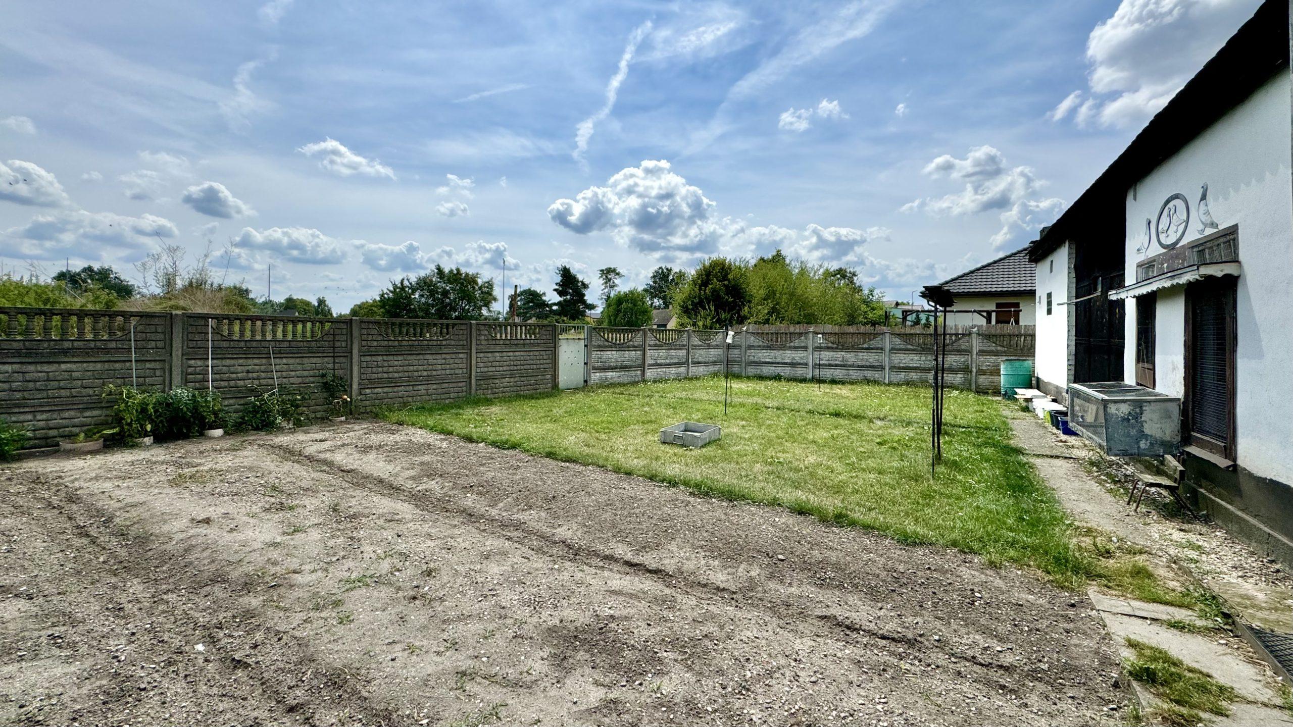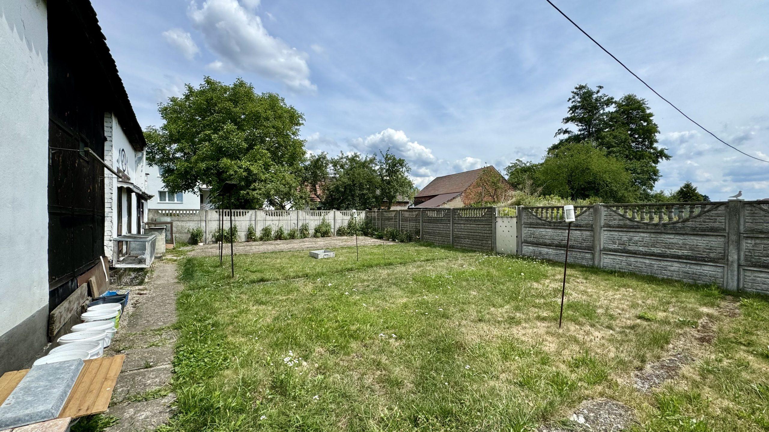 Z tyłu domu znajduje się przestrzeń, którą można przekształcić w urokliwy ogródek. Idealnie nadaje się do rekreacji lub uprawy własnego warzywniaka, co z pewnością ucieszy miłośników ogrodnictwa.