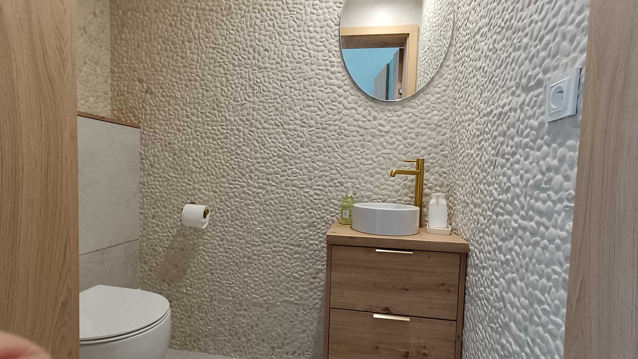 • Ogrzewanie podłogowe w całym domu – zapewniające komfort w chłodne dni,