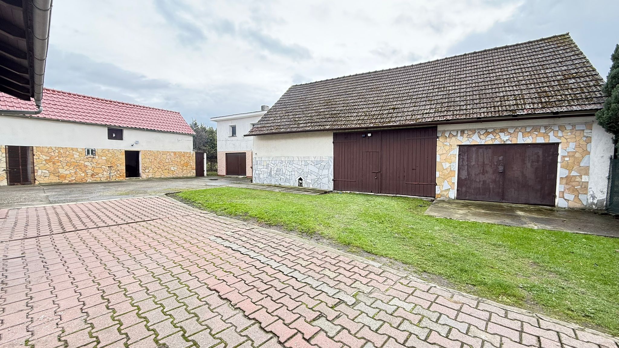 Na terenie nieruchomości znajdują się dwa garaże, stodoła oraz pomieszczenia gospodarcze.