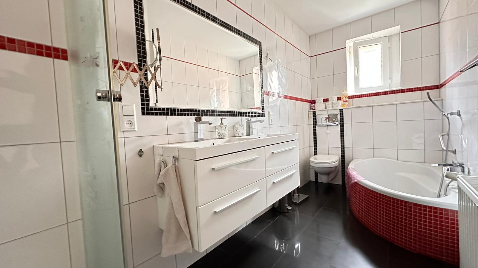 – Duża łazienka z wanną zapewnia wygodę i relaks po długim dniu.