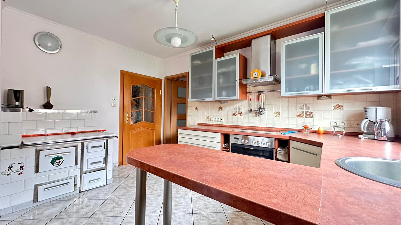 – W kuchni znajduje się piękny biały piec kaflowy, który jest w pełni sprawny i dodaje wnętrzu unikalnego charakteru.