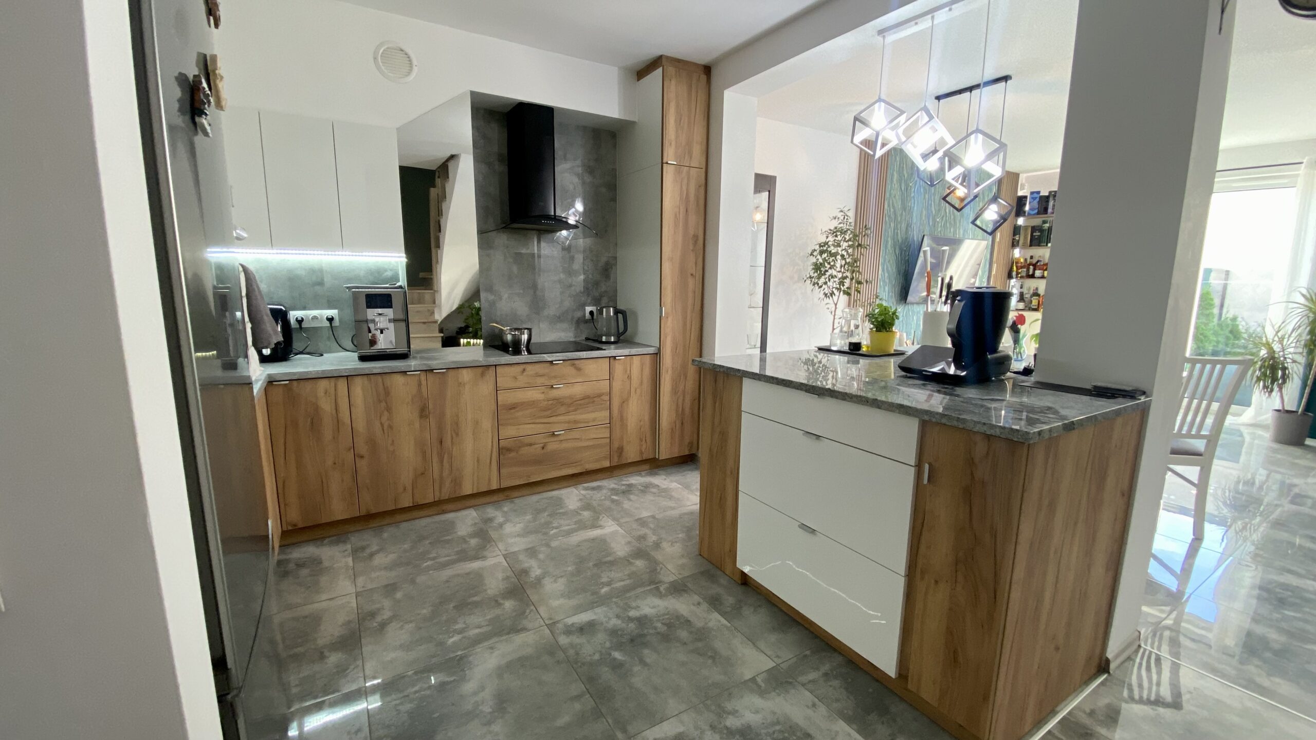 - ogrzewanie pompą ciepła oraz ogrzewanie podłogowe w całym domu,