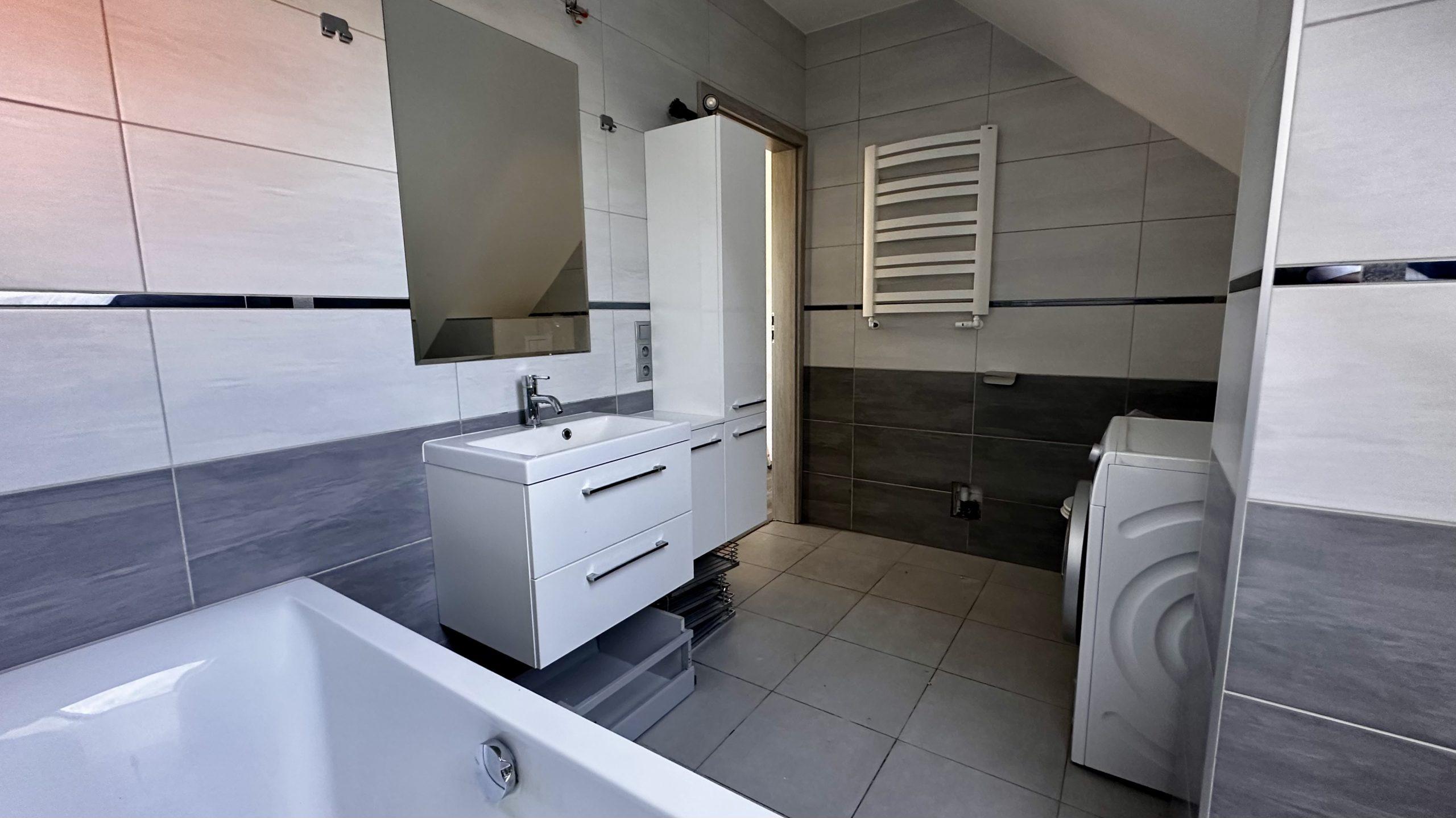 – Łazienka: Również wyposażona w wannę.