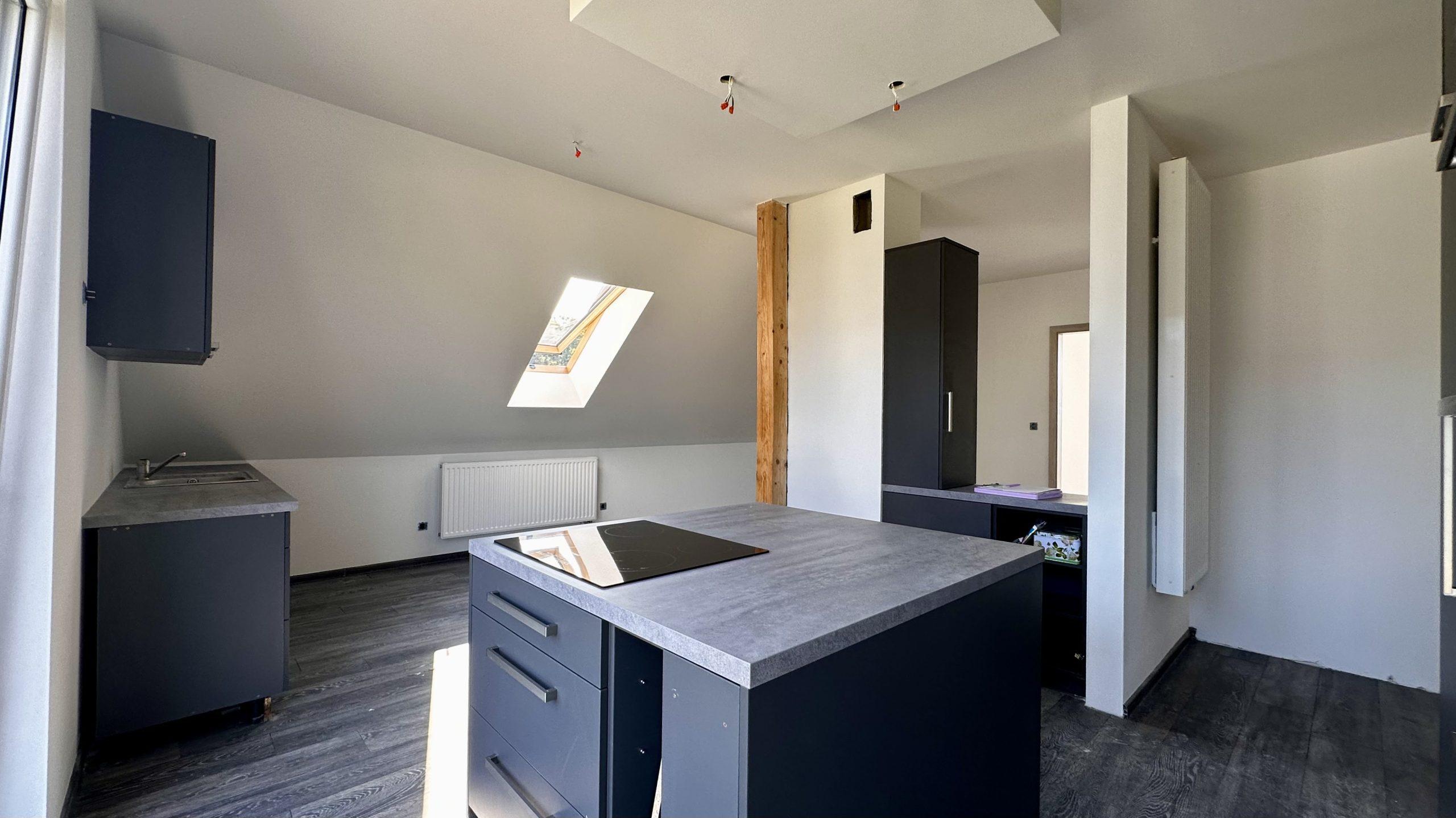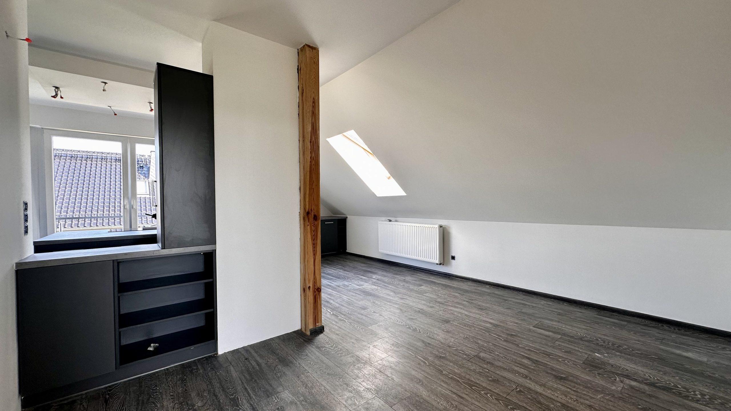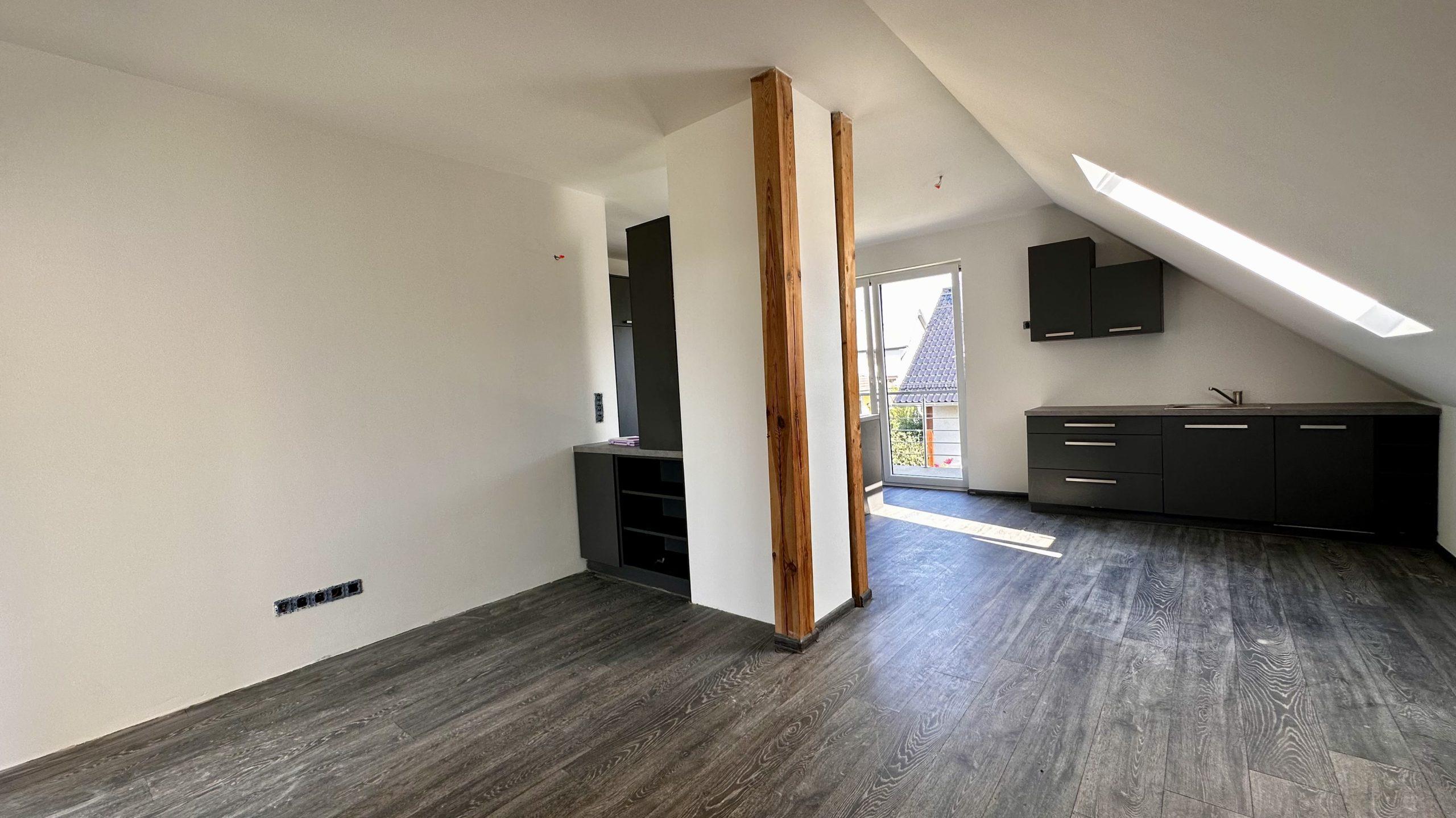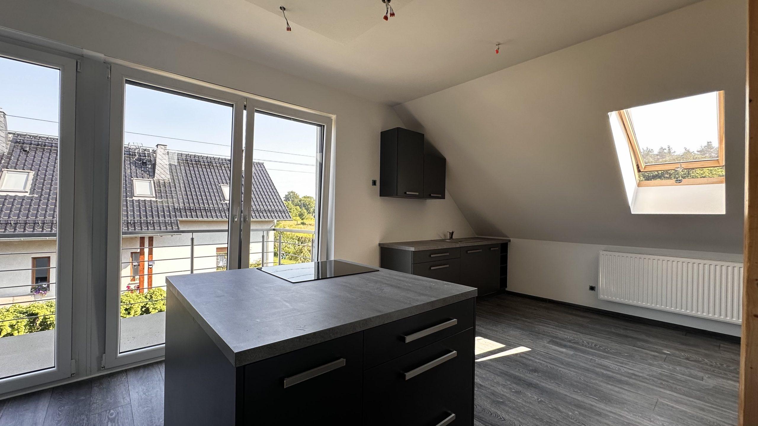 – Salon z aneksem kuchennym: Funkcjonalna przestrzeń z wyjściem na balkon.