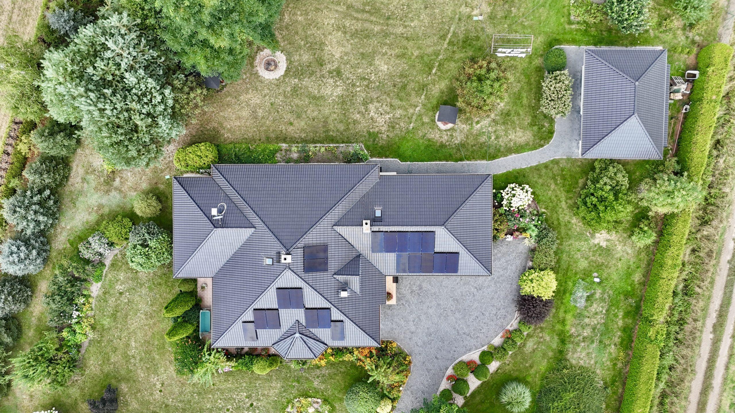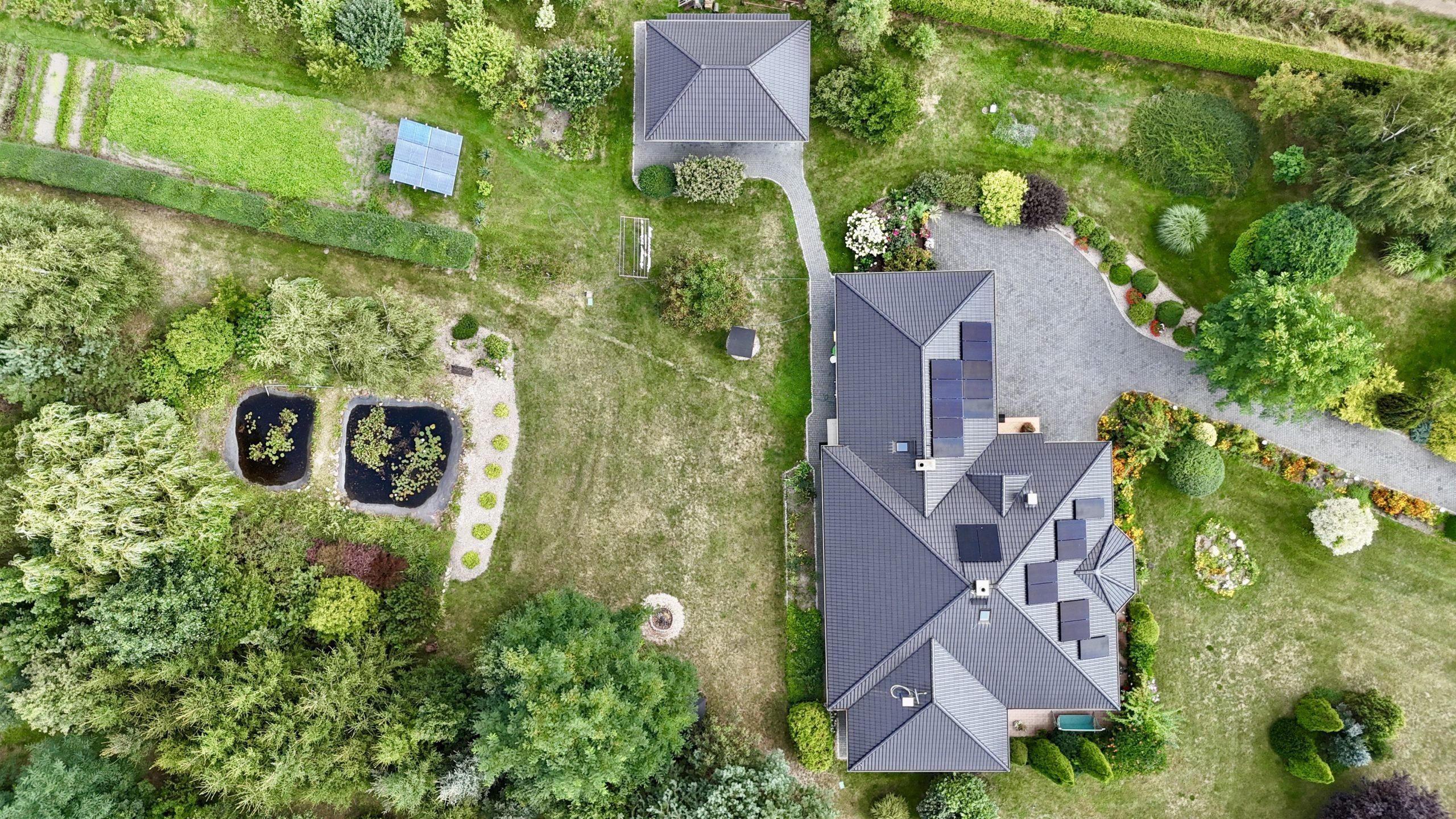 Posiadłość jest w pełni samowystarczalna i przyjazna środowisku. Zainstalowana pompa ciepła marki Vaillant z fotowoltaiką o mocy 10 kW, przydomowa oczyszczalnia ścieków oraz studnia ogrodowa gwarantują bardzo niskie koszty utrzymania.