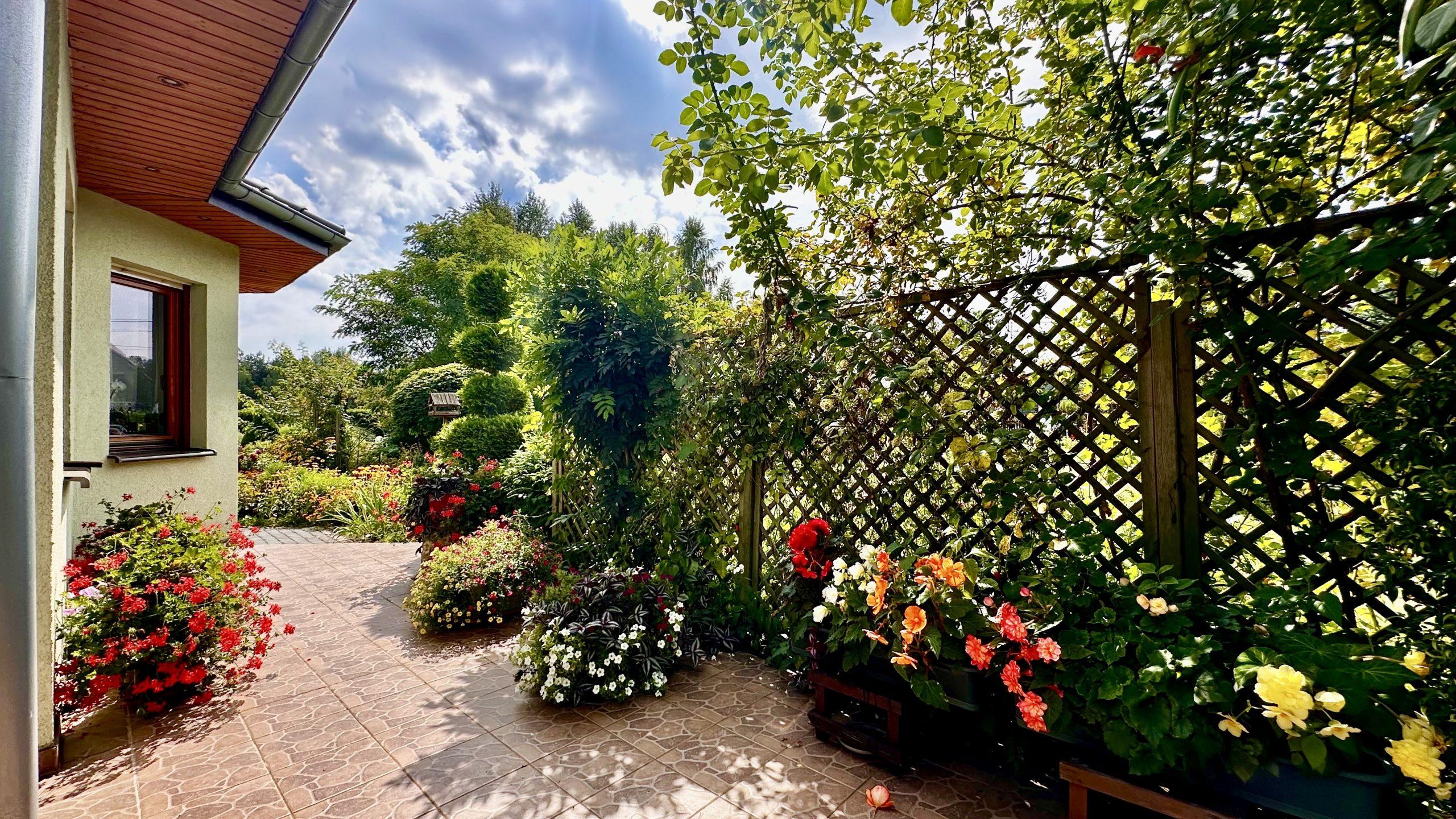 Doskonałe zagospodarowanie działki sprawia, że każdy zakątek tej posiadłości zaprasza do relaksu i kontemplacji. Przestronny, starannie utrzymany ogród, altana oraz dwa oczka wodne tworzą niepowtarzalną atmosferę, idealną do odpoczynku na łonie natury. Dodatkowo, do dyspozycji właścicieli jest budynek gospodarczy o powierzchni 35 m².