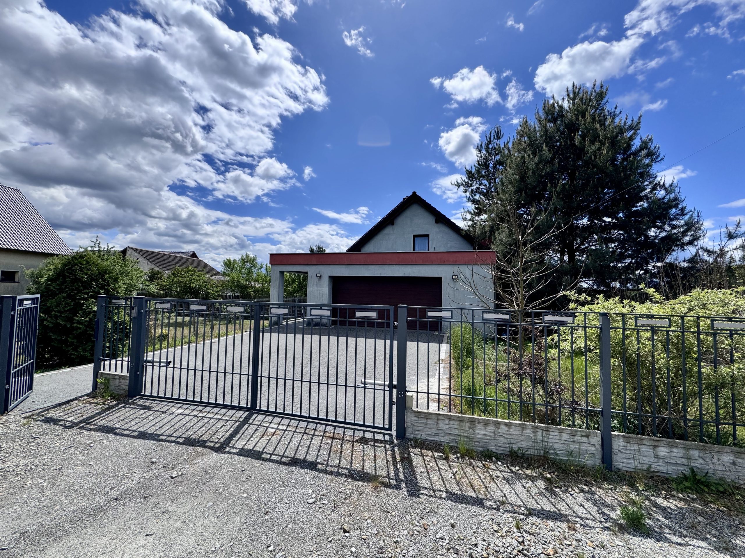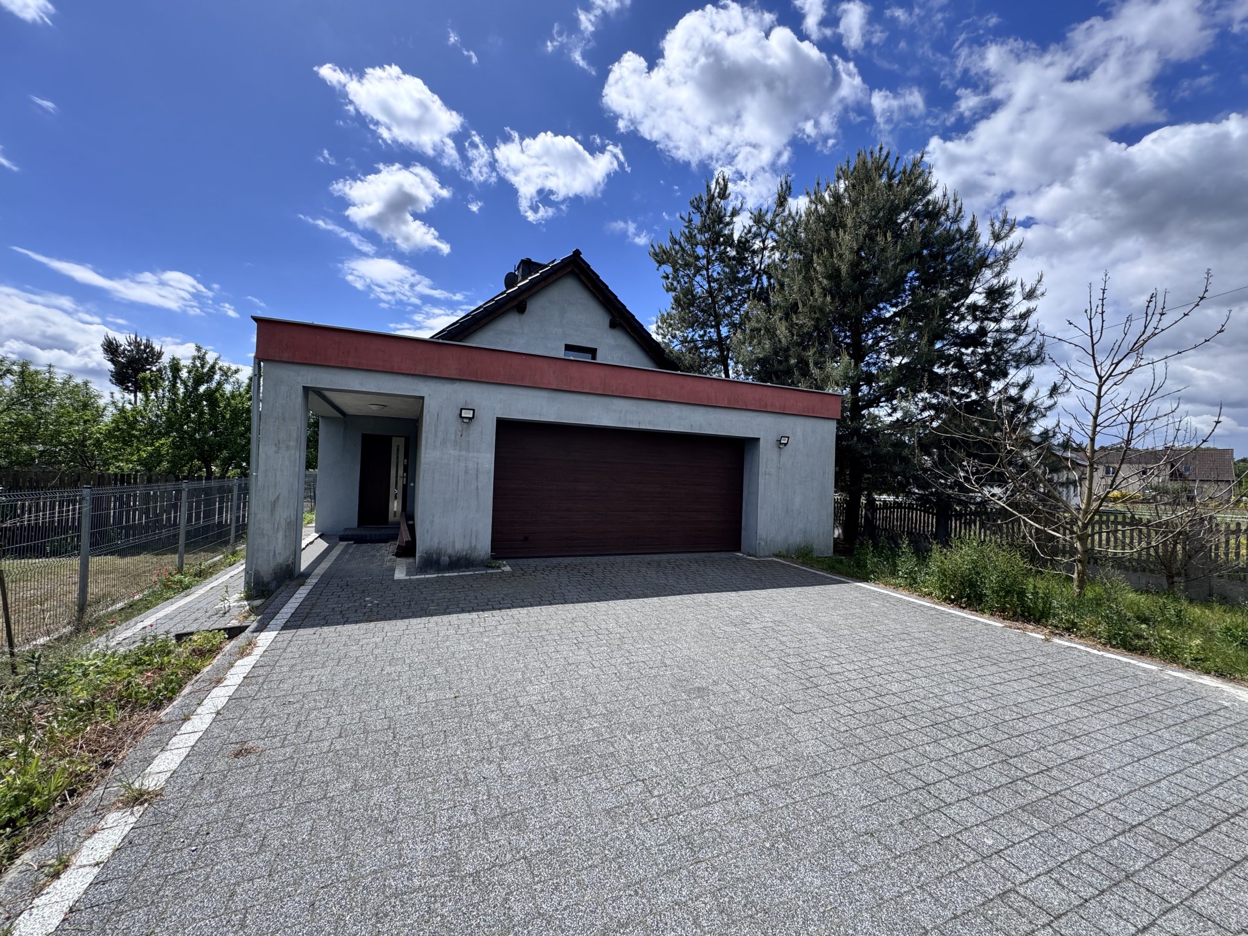 Dom posiada wykostkowany podjazd, co zapewnia wygodę parkowania.