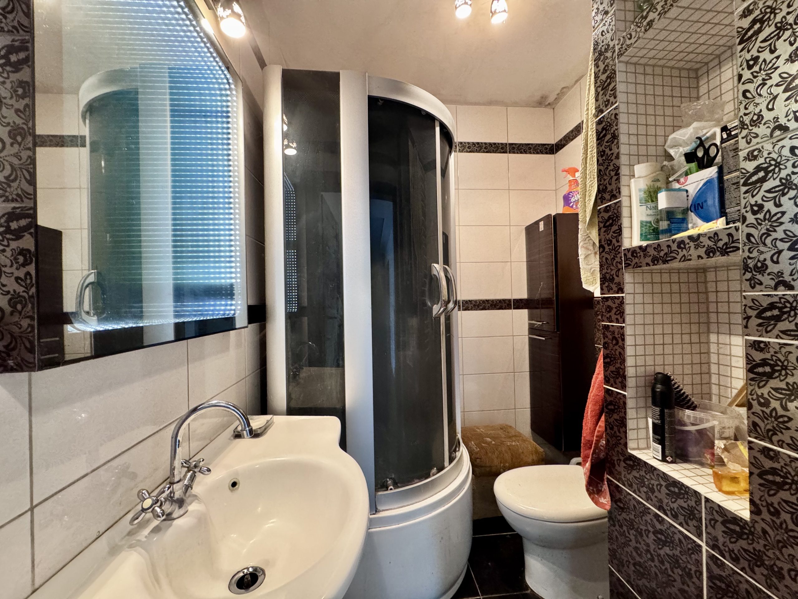 Łazienka z prysznicem i WC.