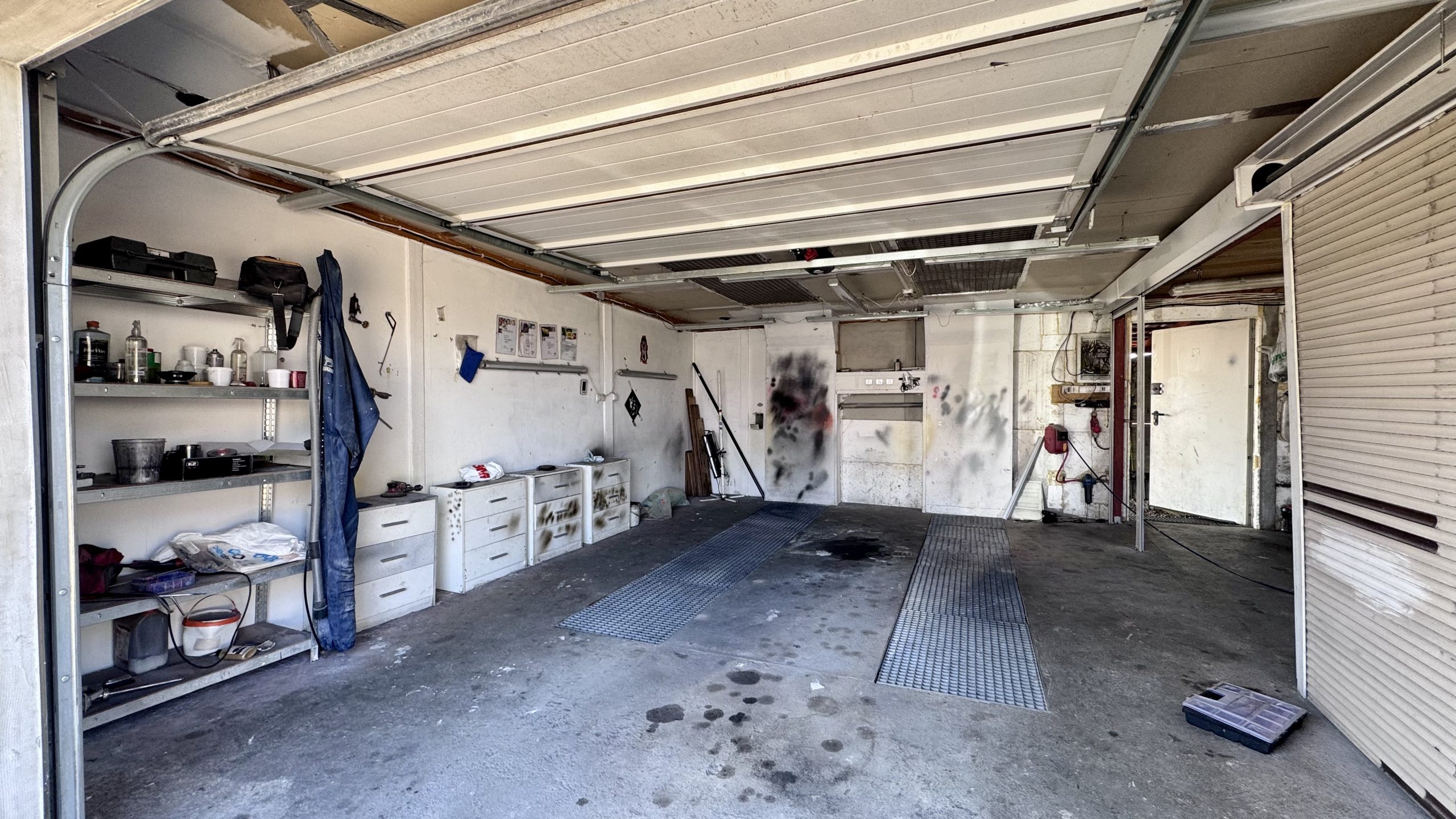 Na terenie nieruchomości znajduje się murowany garaż o powierzchni ok. 70 m² z dwoma stanowiskami: