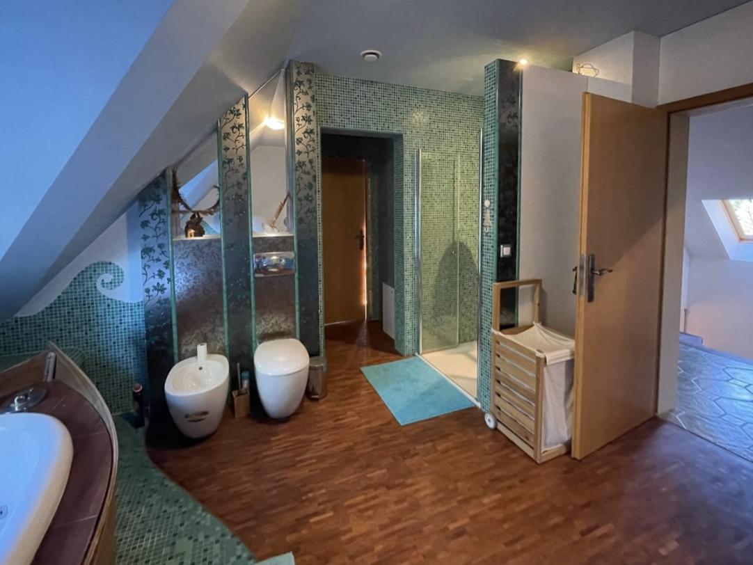 Luksusowa łazienka z dwuosobową wanną z hydromasażem w kształcie łodzi, WC z bidetem i prysznicem