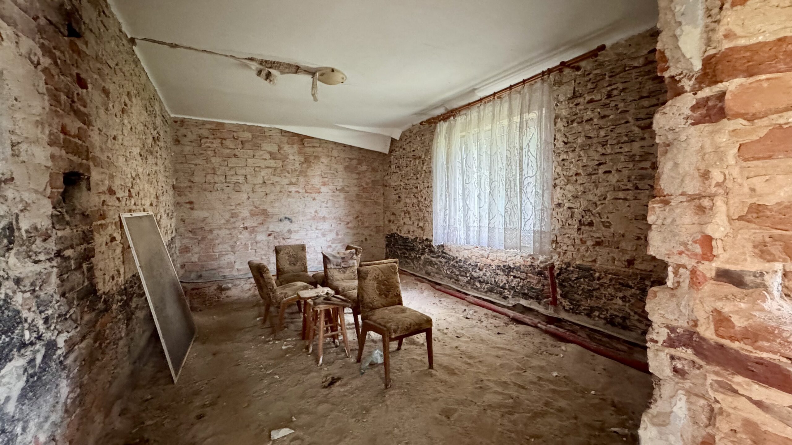 Dom murowany z cegły, z dachem krytym dachówką. Rozpoczęto w nim generalny remont – skute są tynki, przygotowane podłoże pod posadzki oraz prowadzone prace instalacyjne. Na całej części mieszkalnej wykonano podcinkę murów i wprowadzono izolację poziomą, co skutecznie zabezpieczyło ściany przed wilgocią.