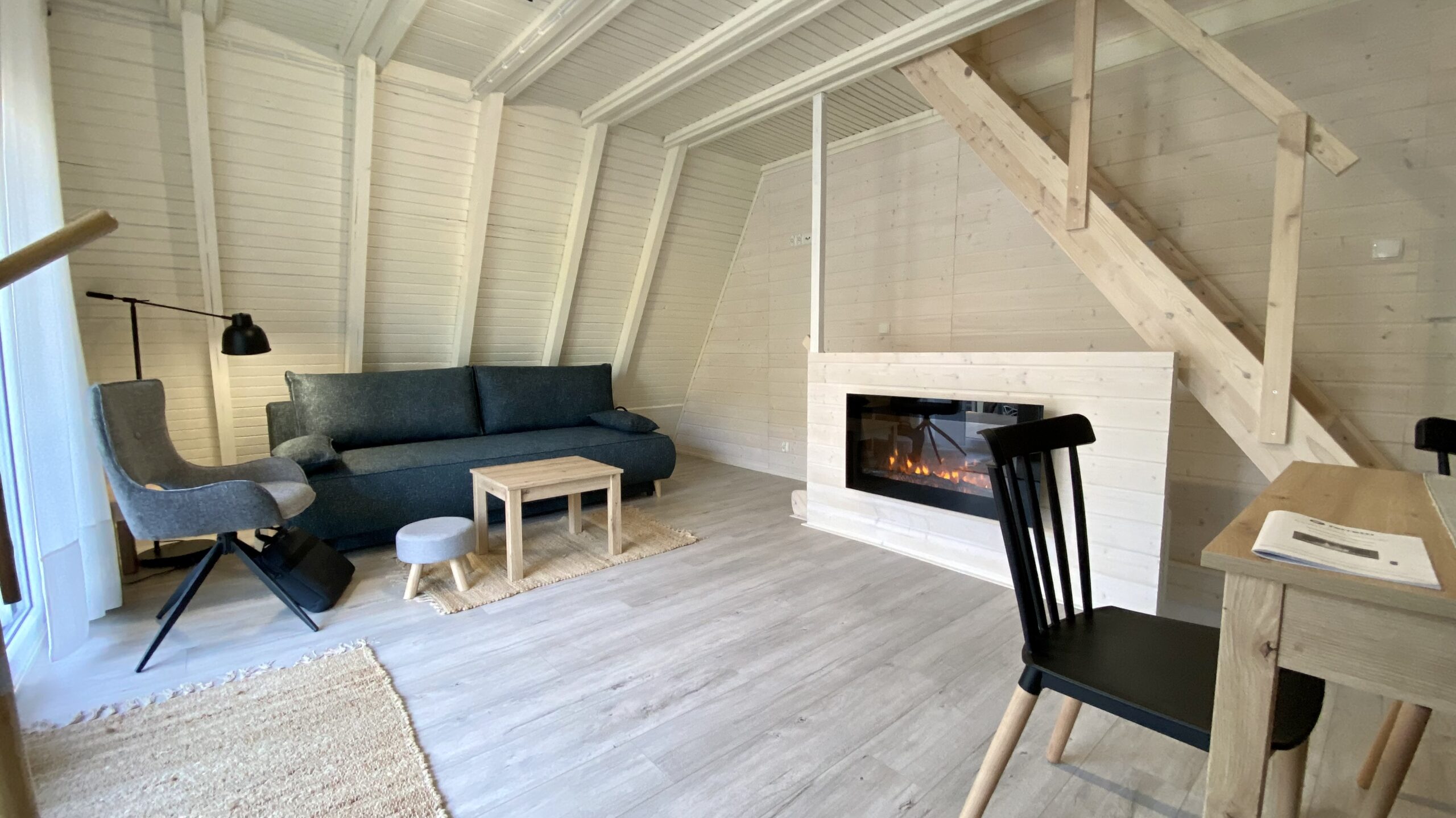 - Drewniane stropy, podłogi wykończone panelami