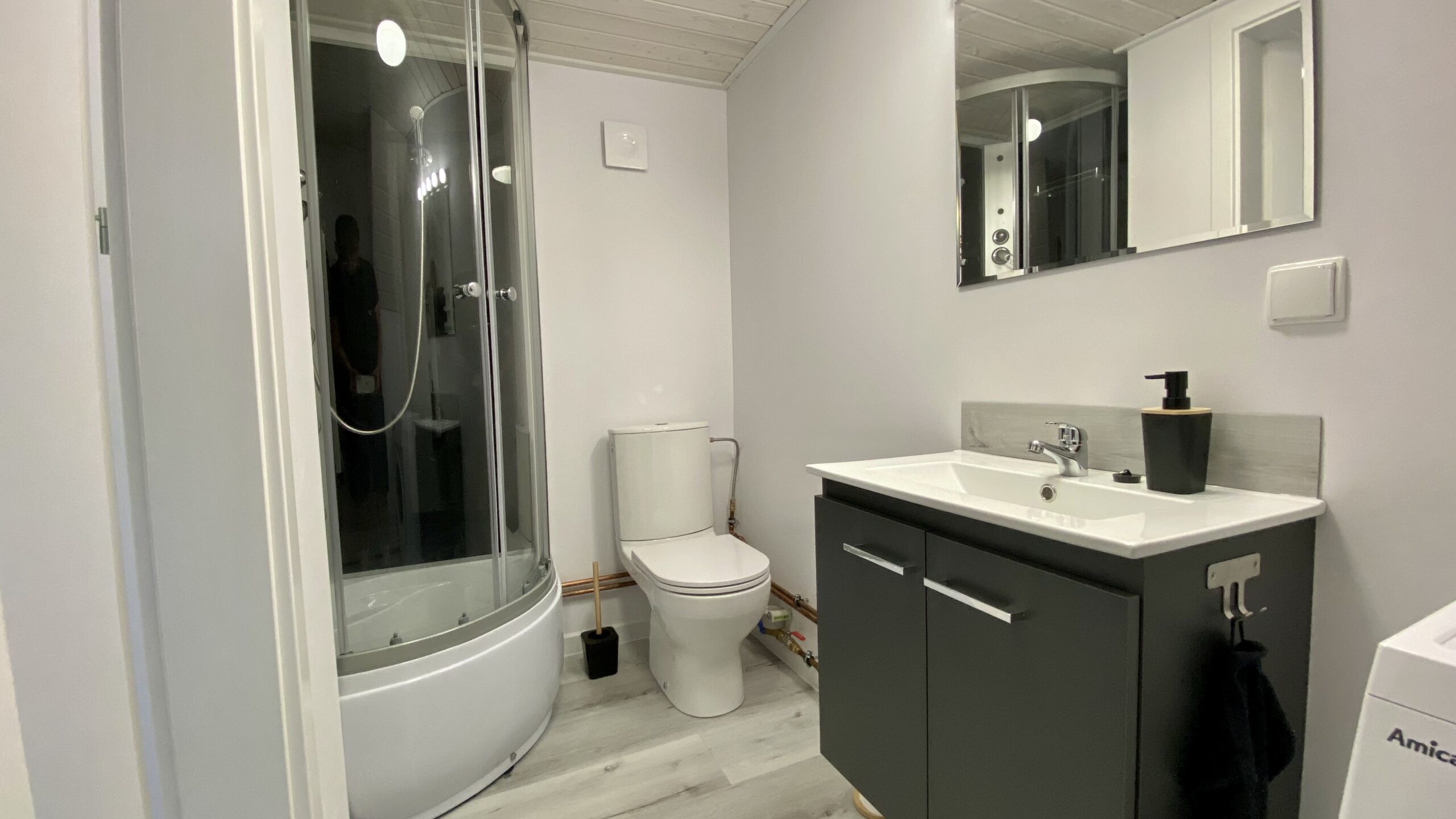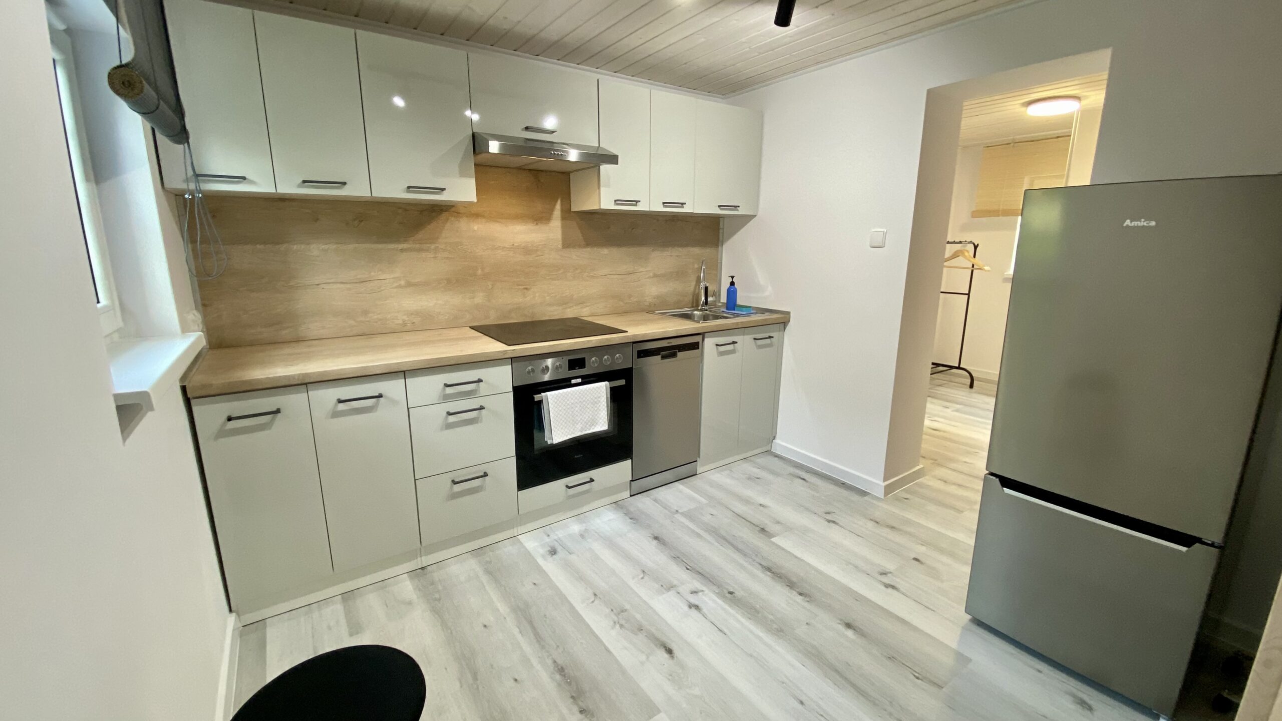 - Łazienka i kuchnia w pełni wyposażone: pralka, lodówka, płyta grzewcza