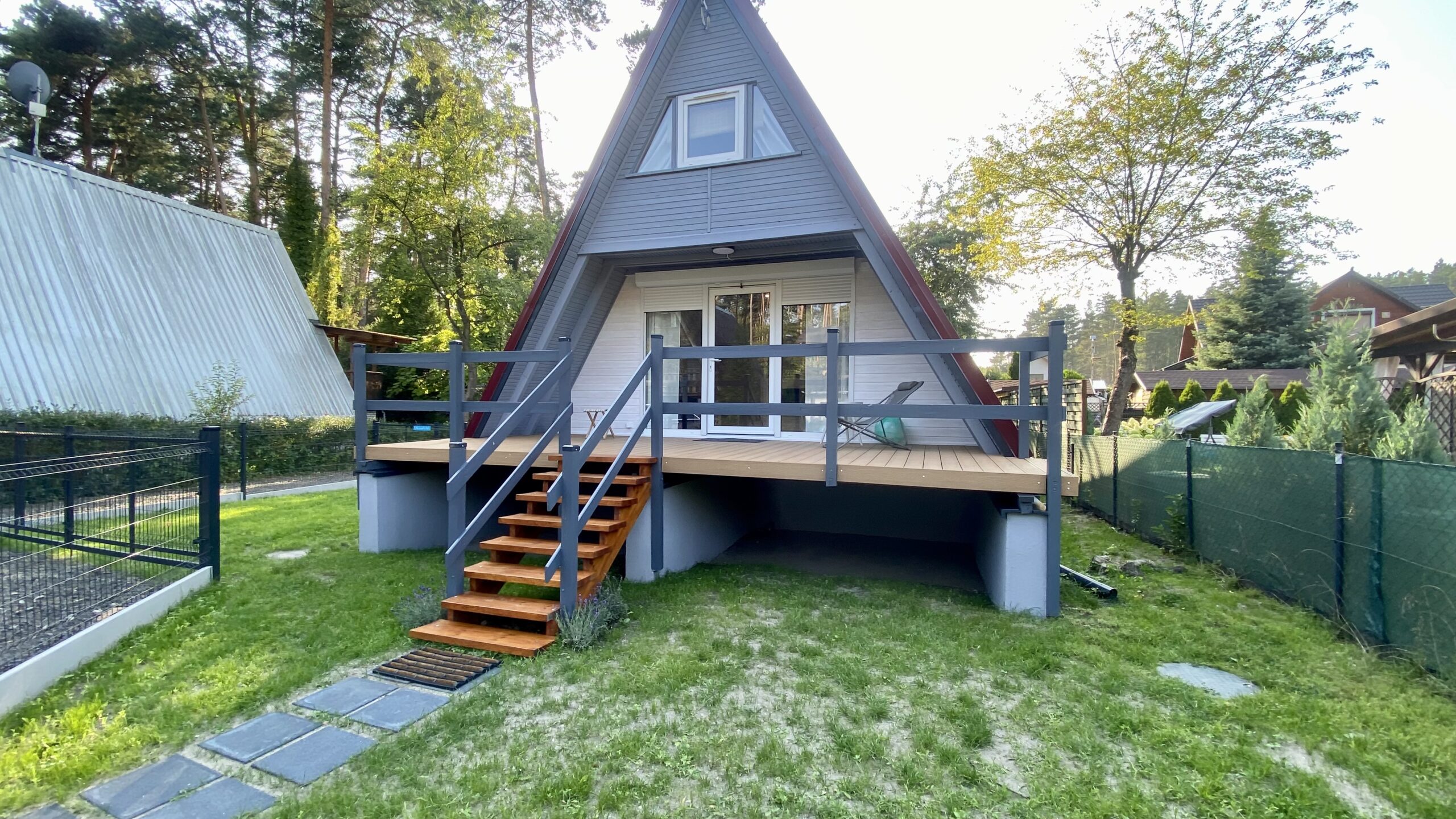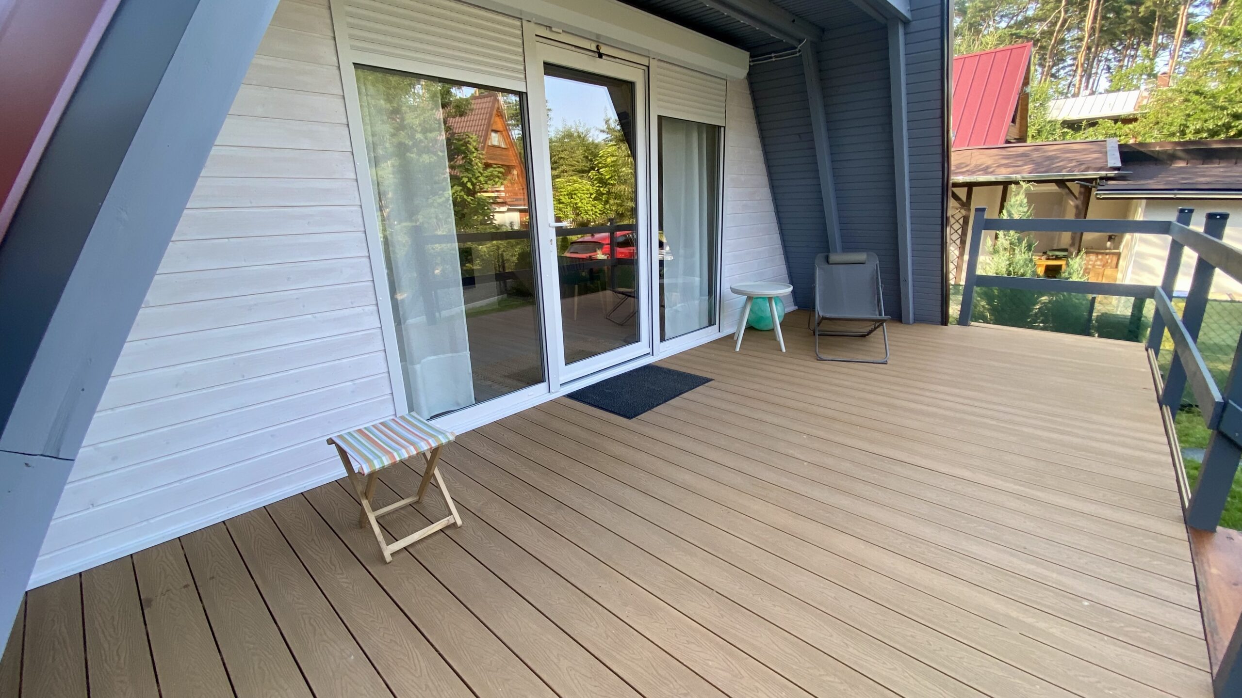 - Komfortowe patio przed wejściem oraz ogródek – idealne miejsce do spędzania czasu na świeżym powietrzu