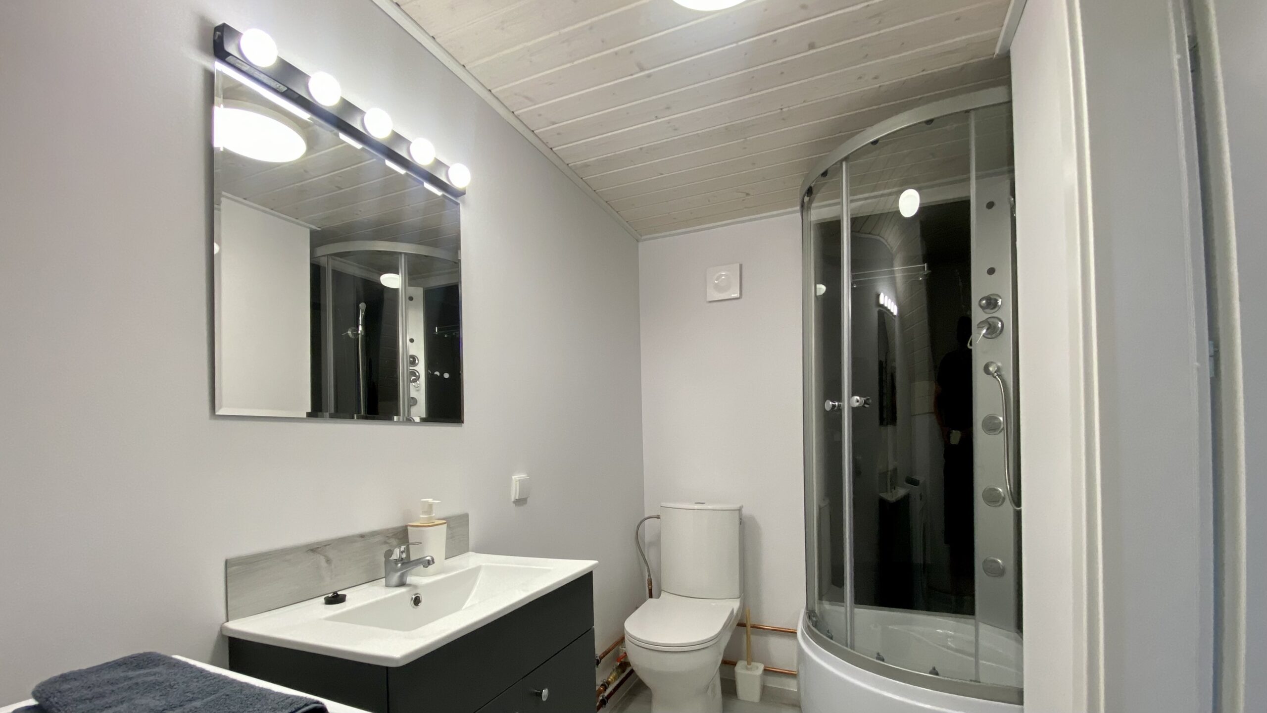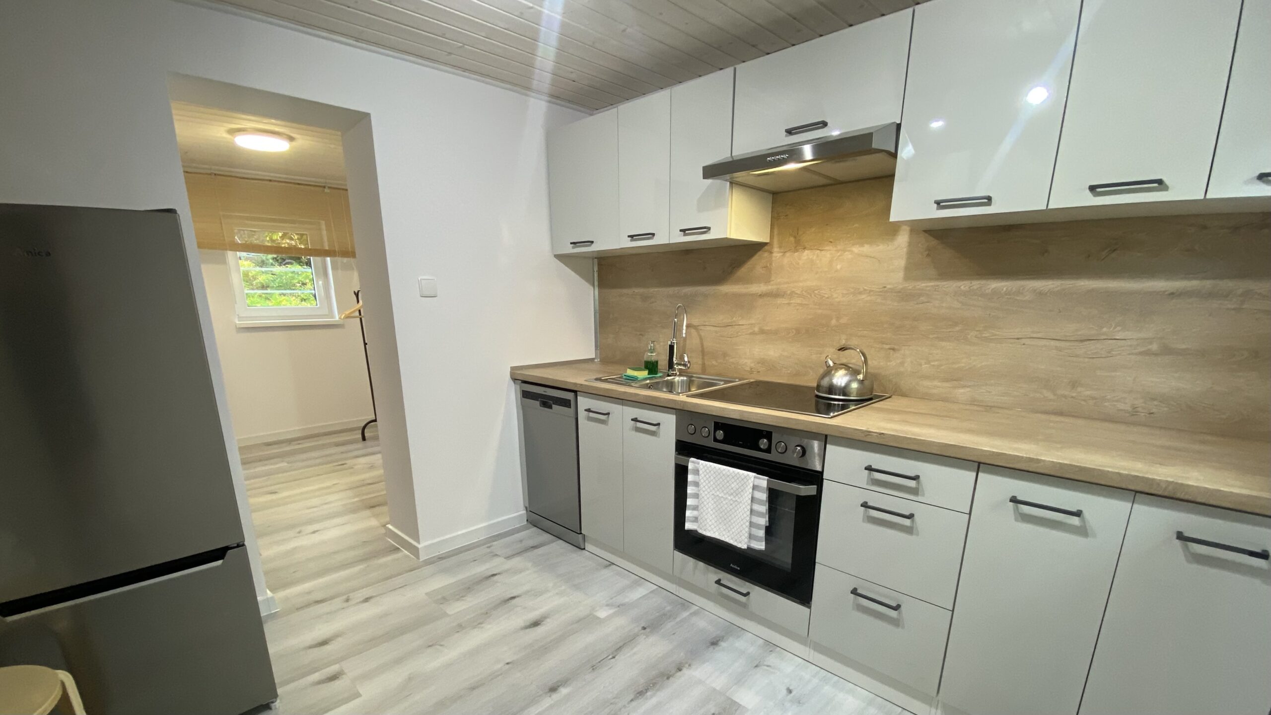 - Łazienka i kuchnia w pełni wyposażone: pralka, lodówka, płyta grzewcza