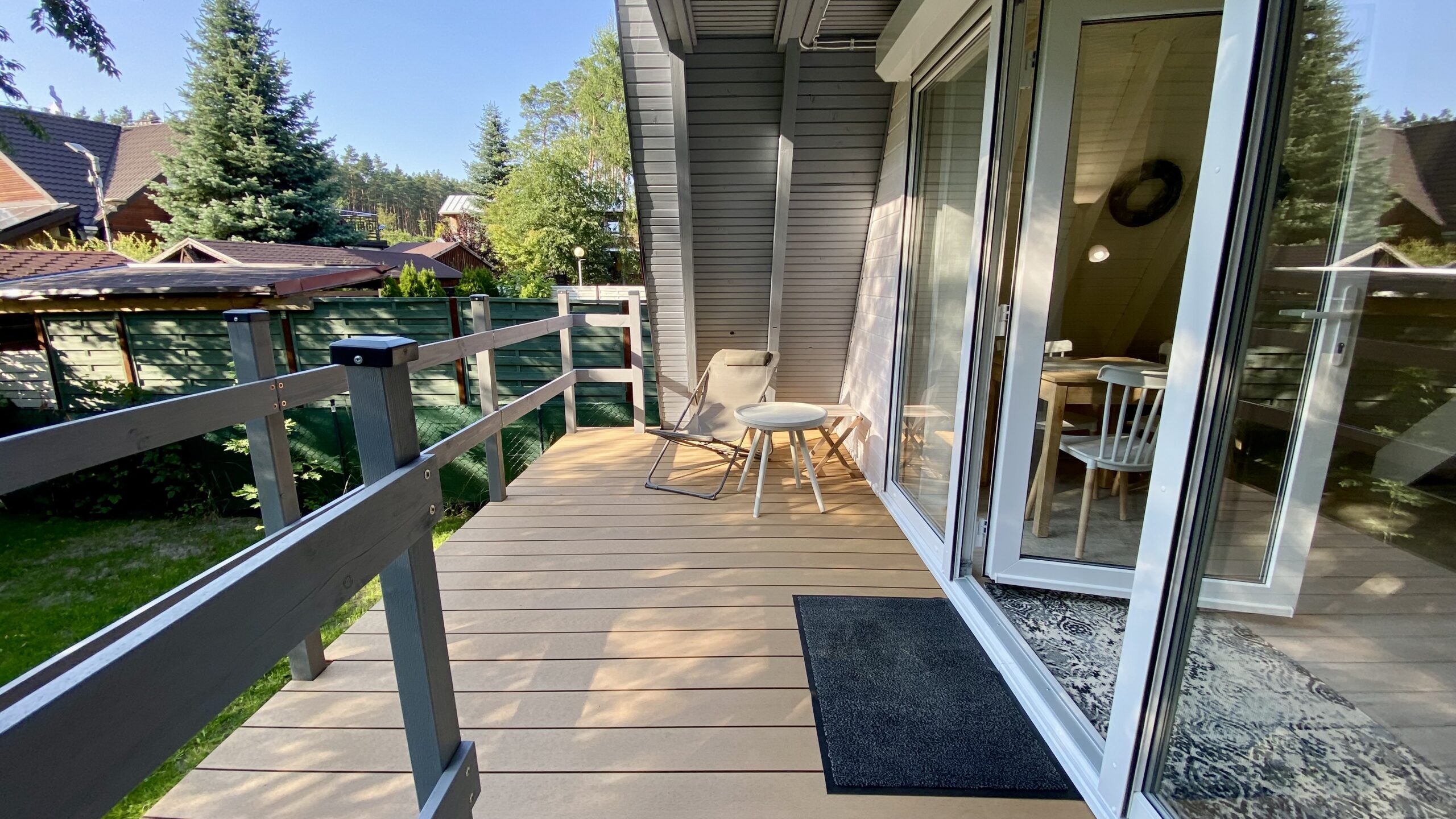 - Komfortowe patio przed wejściem oraz ogródek – idealne miejsce do spędzania czasu na świeżym powietrzu