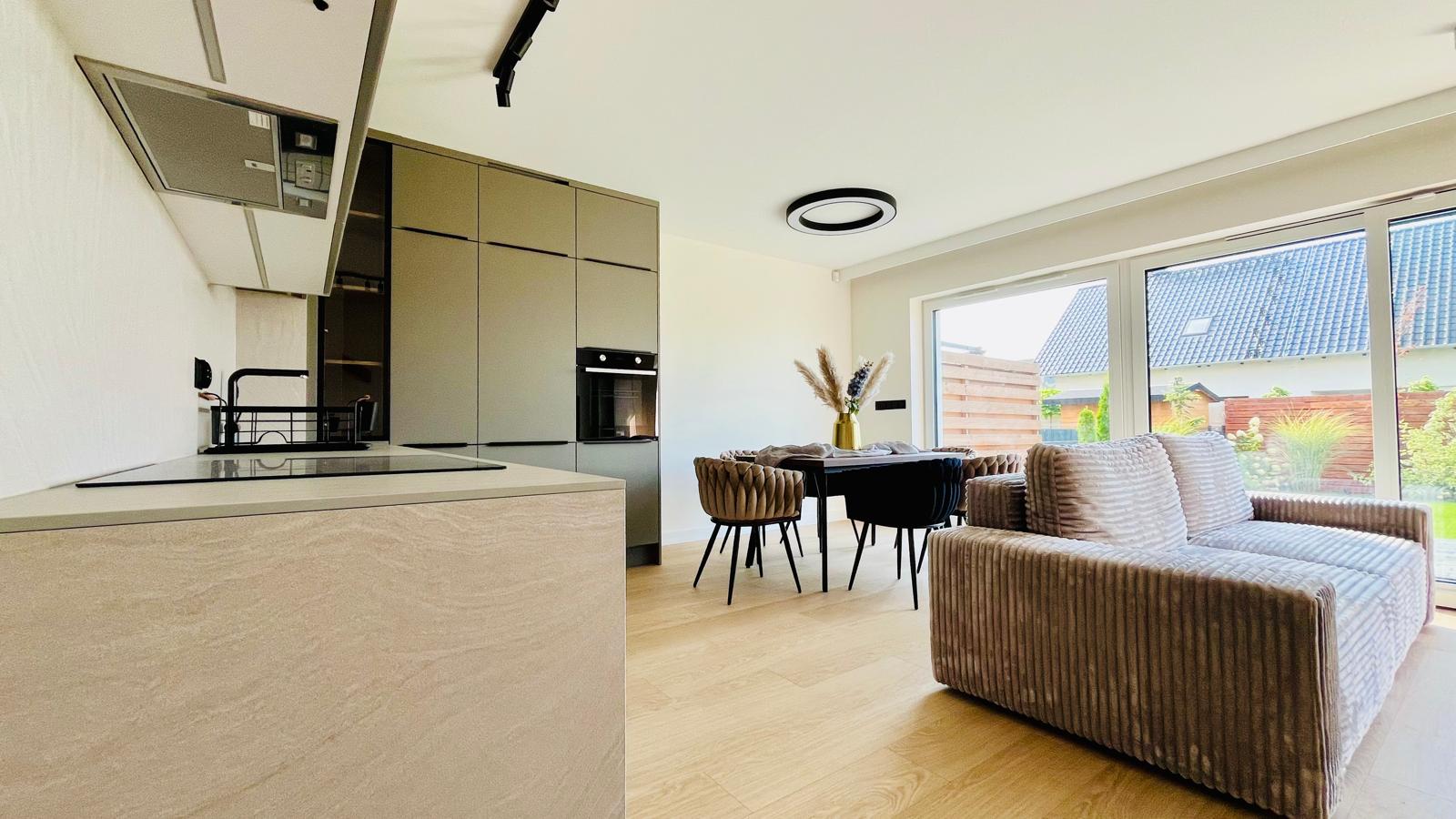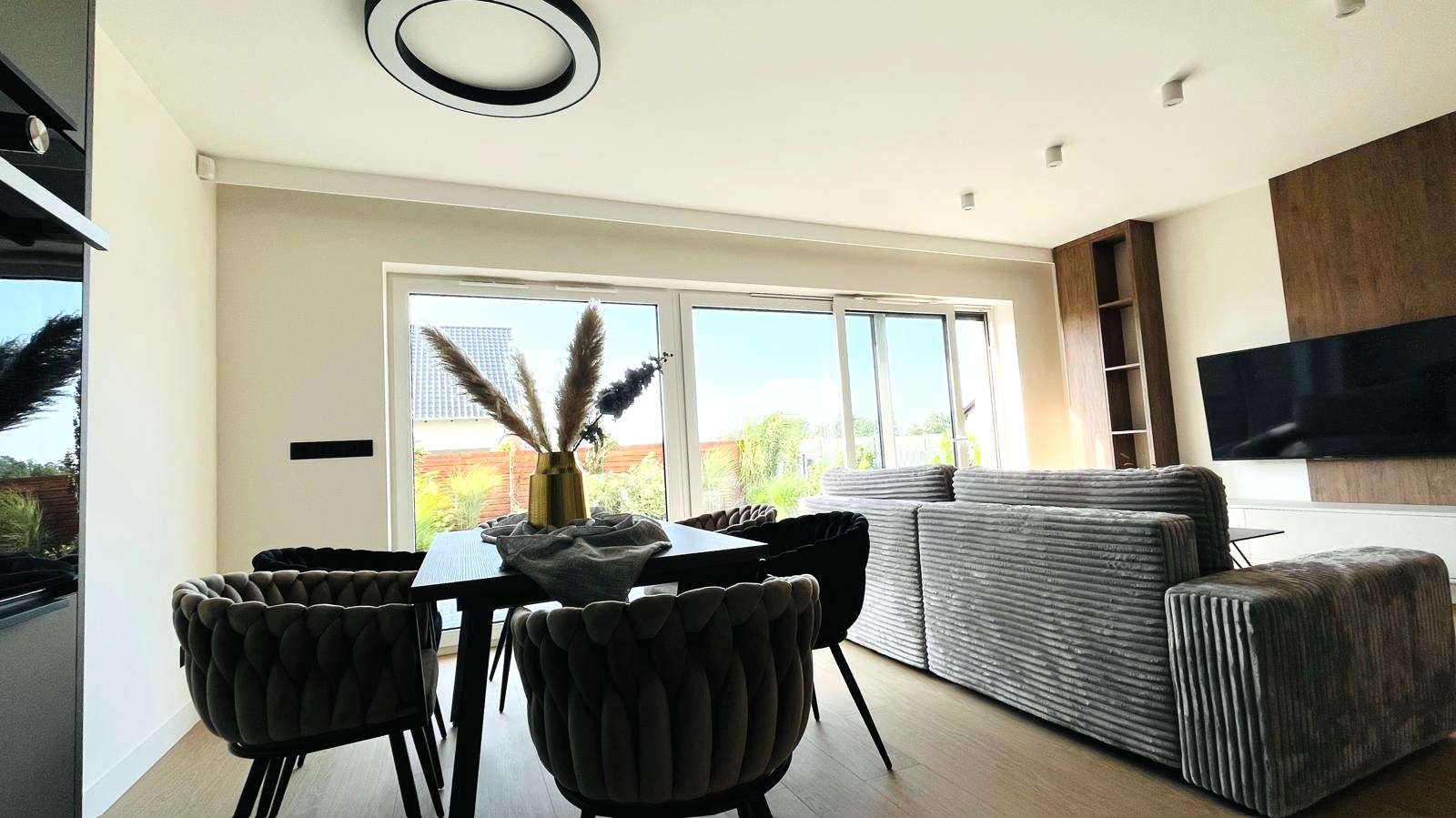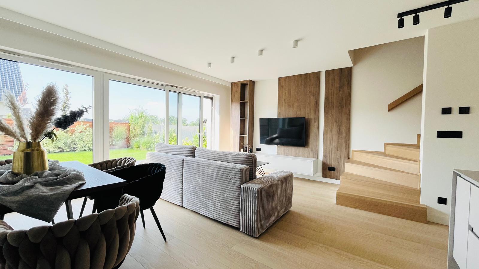 Bo to praktyczny, nowy i nowoczesny dom, w którym wszystko jest już gotowe: ogród, taras, kuchnia, automatyka i komfort na co dzień. Wystarczy wnieść rzeczy i zamieszkać.