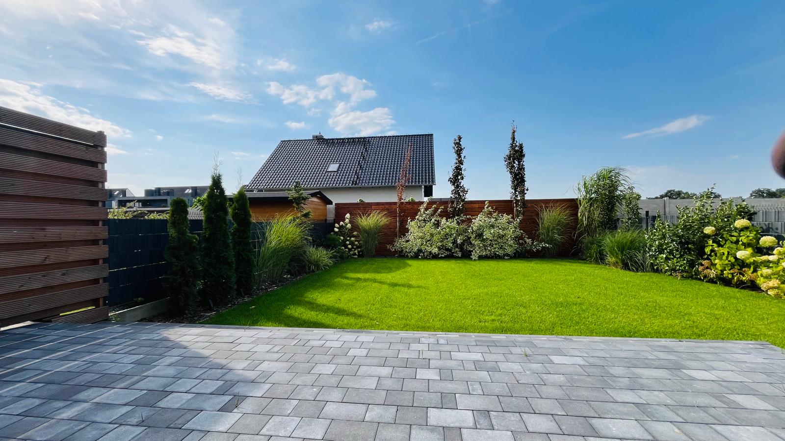 - Ogród ok. 160 m² – w pełni zaaranżowany, automatyczne nawadnianie