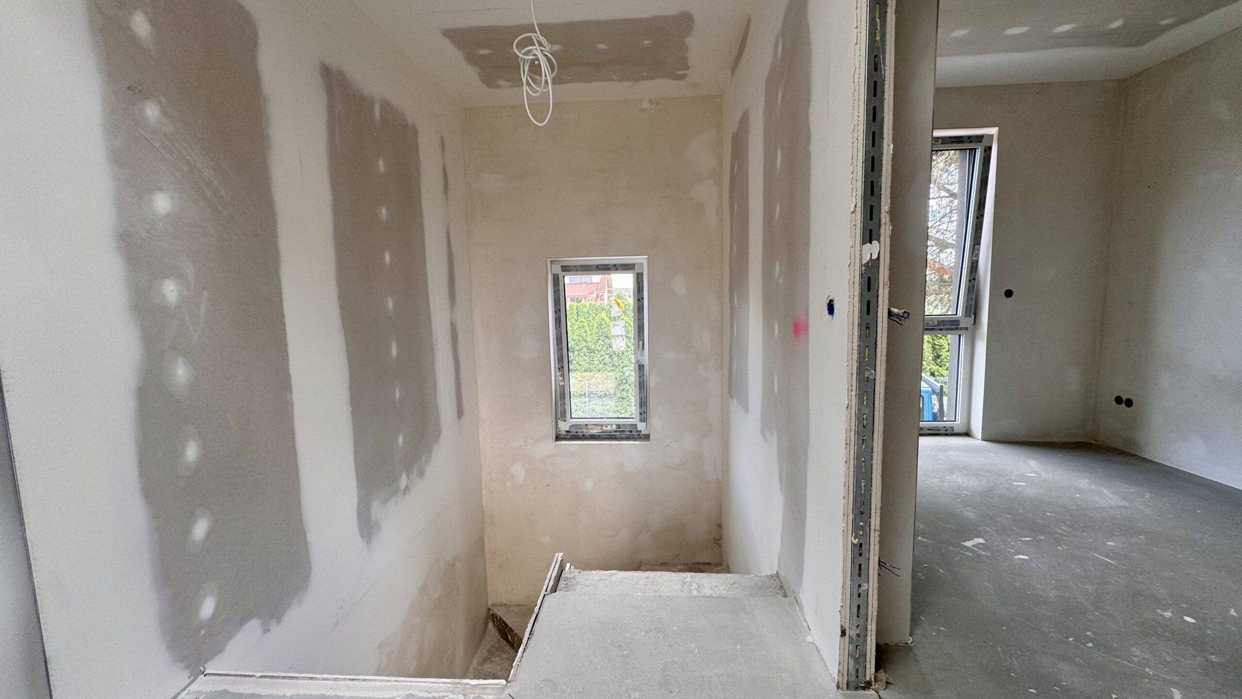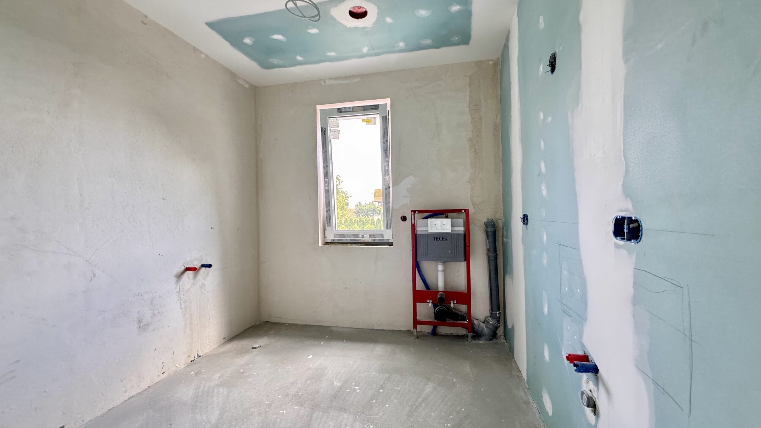 - wewnątrz: tynki gipsowe, posadzki cementowe, zabudowane stelaże WC,
