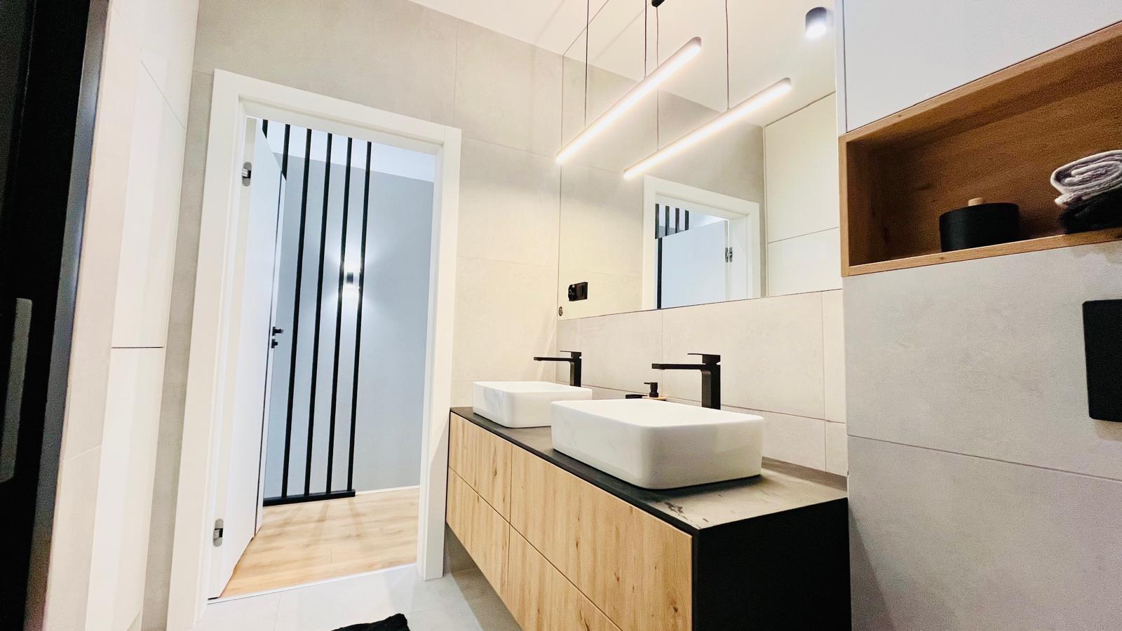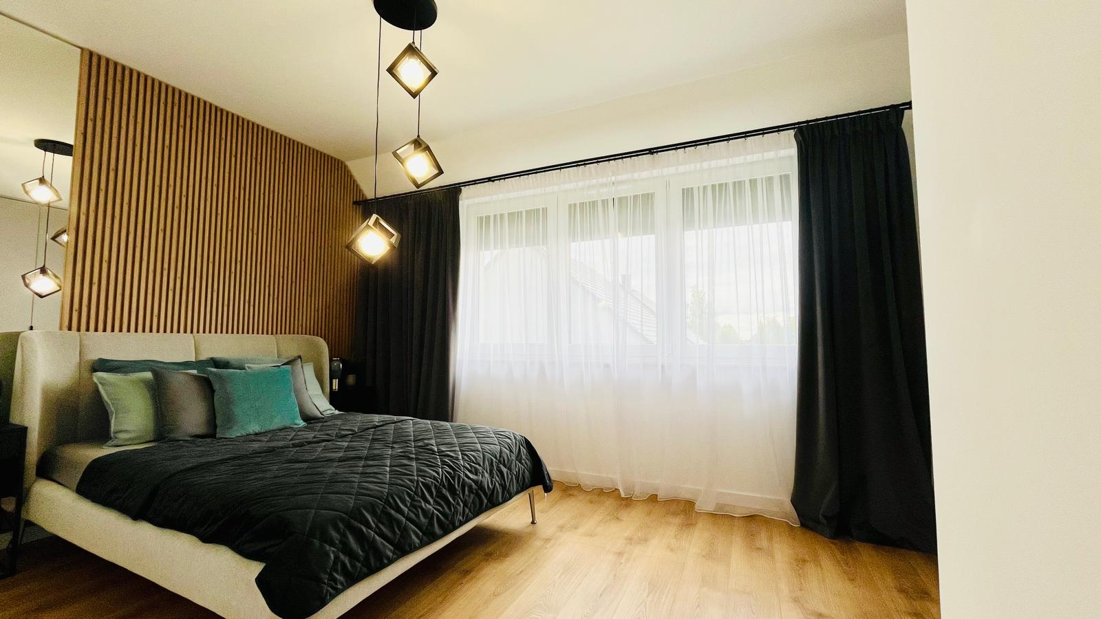 nowoczesne rozwiązania techniczne: pompa ciepła, trzyszybowe okna z mechanicznymi roletami,