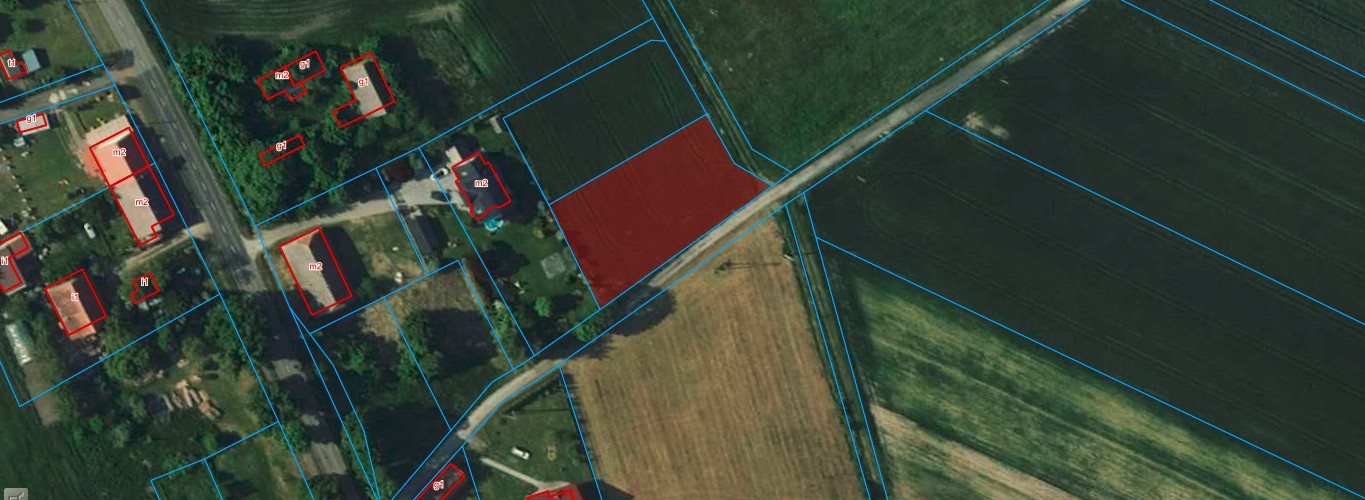 - Pierwsza linia zabudowy, dojazd utwardzoną drogą gruntową (ok. 100 m od asfaltu).