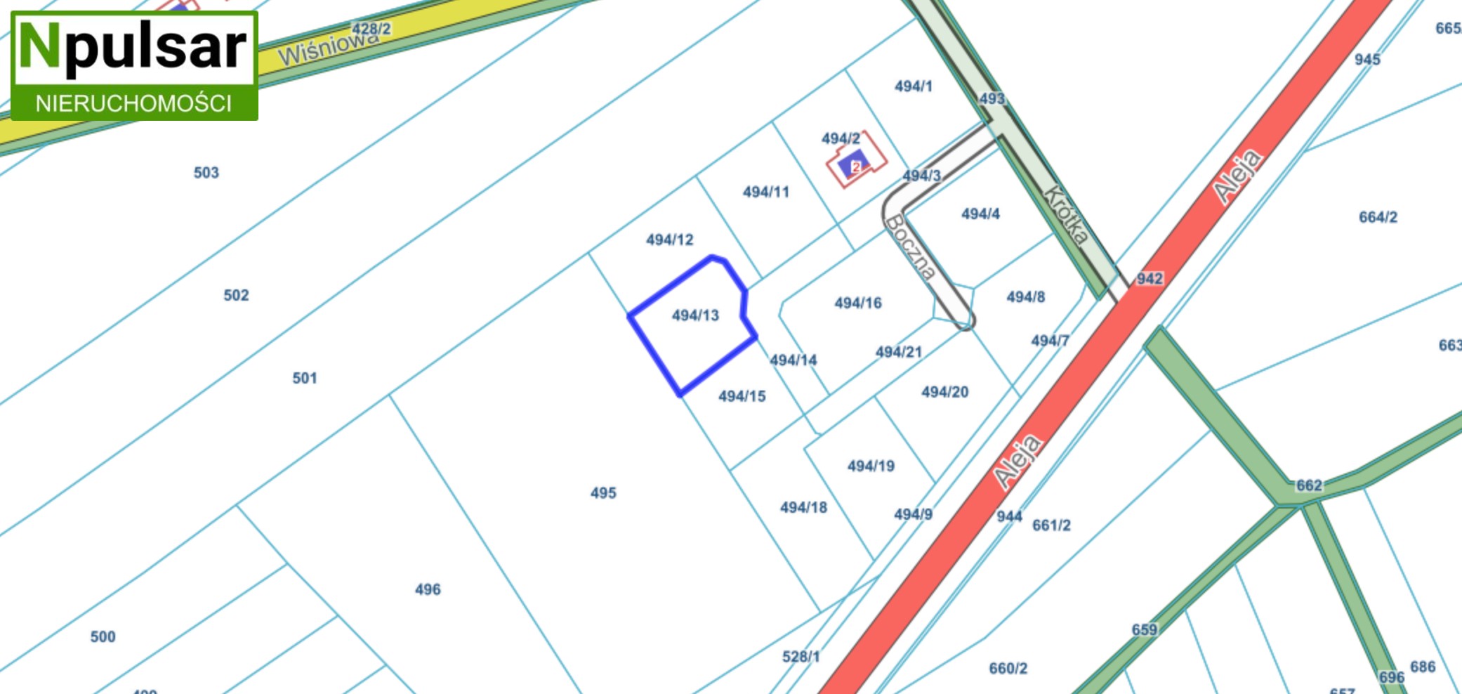 Działka położona w spokojnej części miejscowości, z dogodnym dojazdem drogą gminną z dwóch stron, od strony ul. Aleja Opolska lub od strony ul. Wiśniowej oraz drogą wewnętrzną. W sąsiedztwie znajduje się nowa i istniejąca zabudowa jednorodzinna. Okolica jest cicha, zielona i dobrze skomunikowana z centrum Prószkowa i Opola.