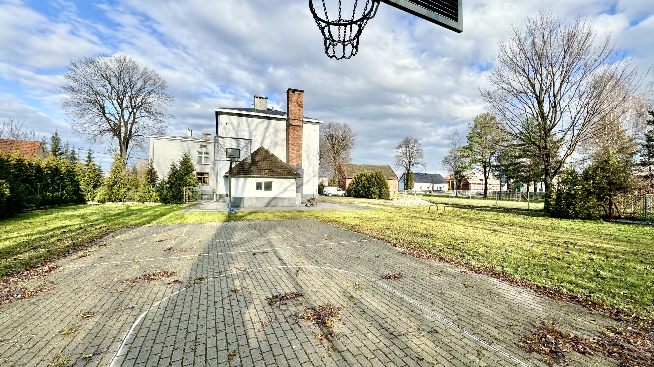 Na terenie działki znajduje się miejsce na boisko do koszykówki i siatkówki, miejsce na wiatę ogrodową, a także utwardzona kostką część przeznaczona na parking.