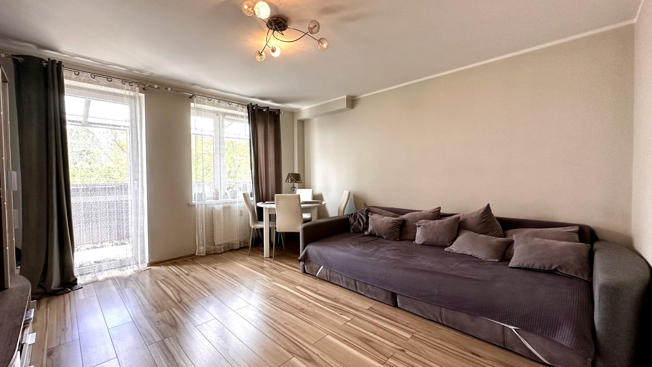 - duży, jasny salon z balkonem,