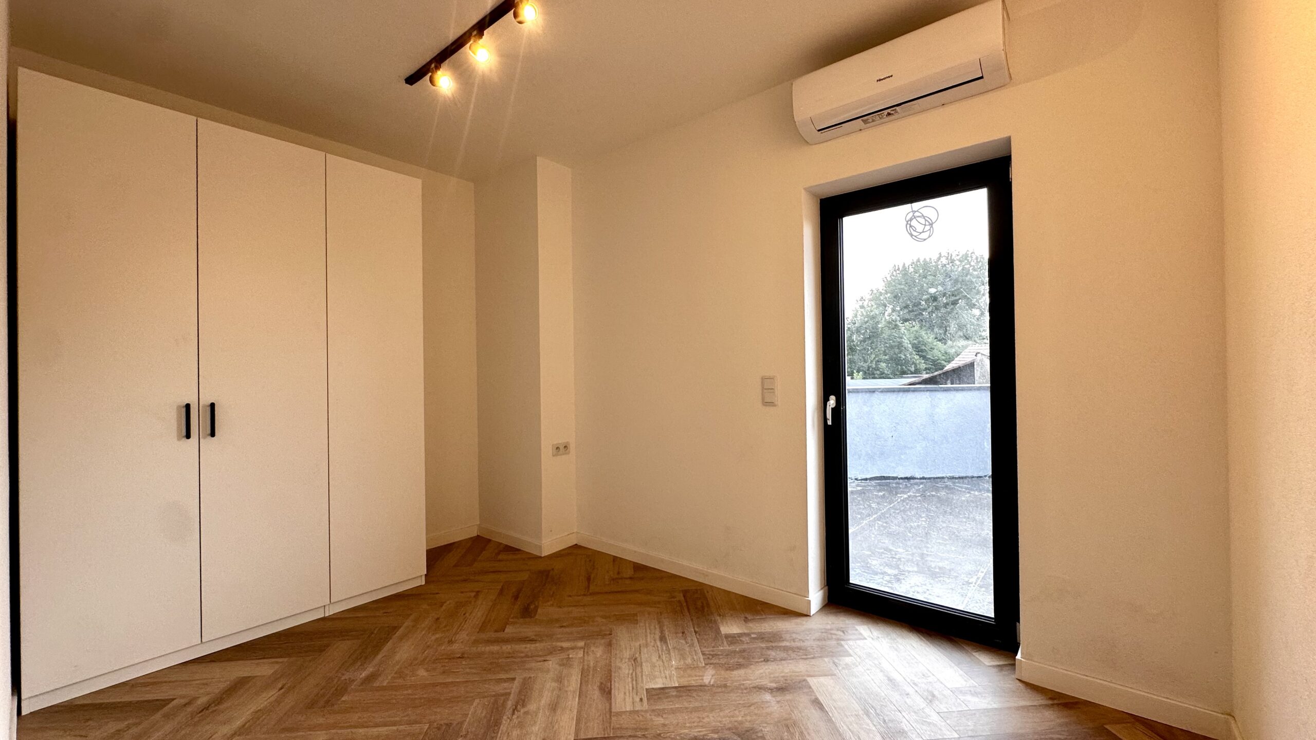 - sypialnia z wyjściem na taras (wyłożony sztuczną trawą – idealne miejsce na poranną kawę lub wieczorny relaks),