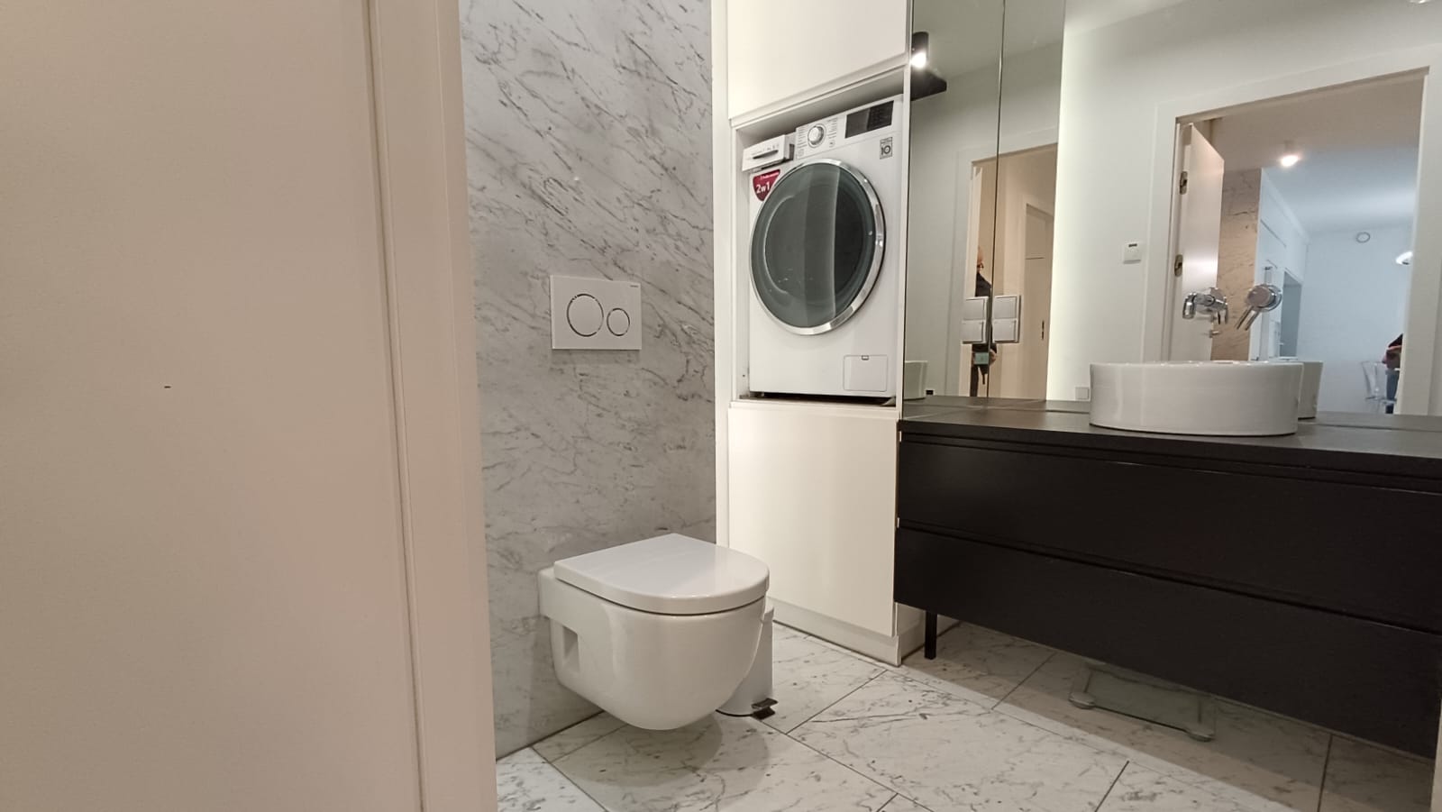 - Najnowszej generacji sprzęt AGD (lodówka Samsung A++ z kostkarką i filtrem wody, zmywarka Electrolux 45 cm, biała płyta indukcyjna Electrolux, piekarnik, pralko-suszarka LG),