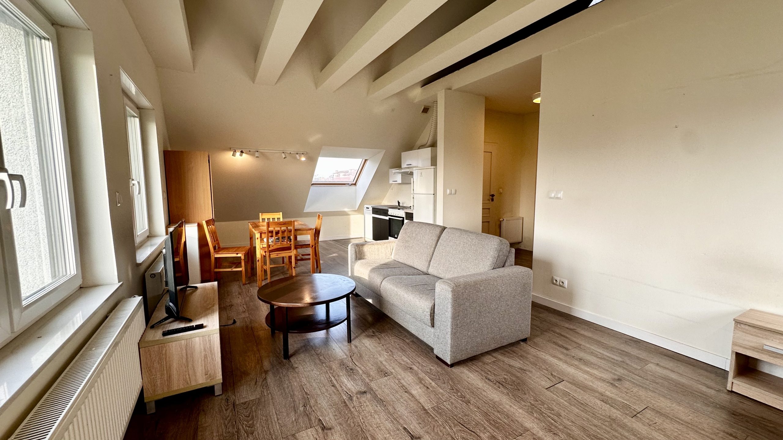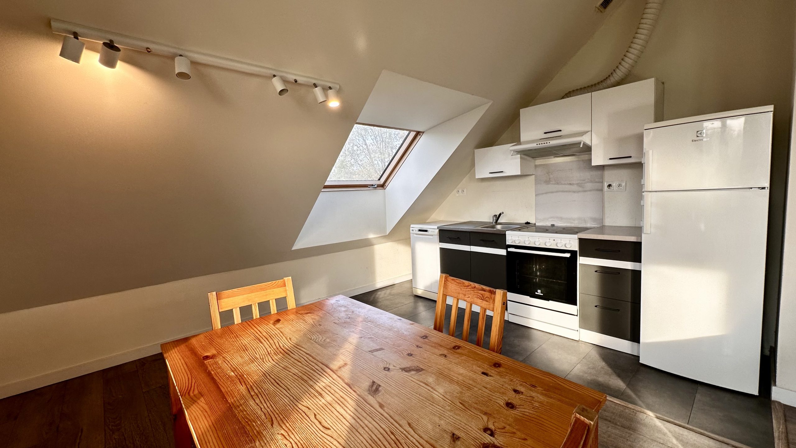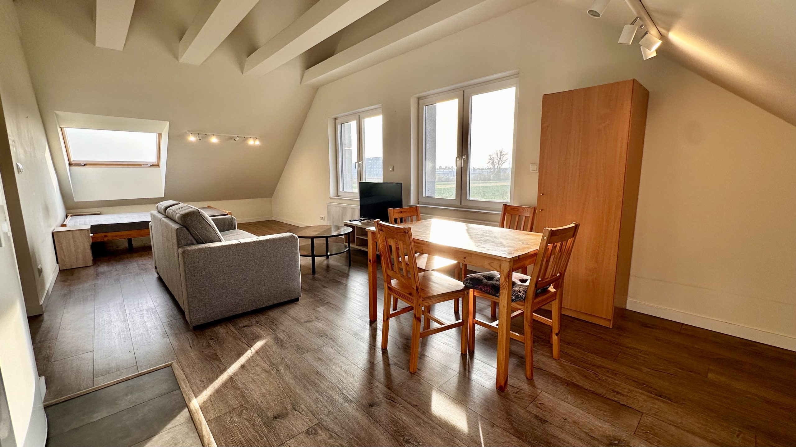 Salon z aneksem kuchennym – przestronny, z miejscem do relaksu oraz dobrze wyposażoną kuchnią. Znajdują się w niej lodówka, piekarnik, płyta grzewcza, zmywarka oraz okap, co zapewnia pełen komfort użytkowania.