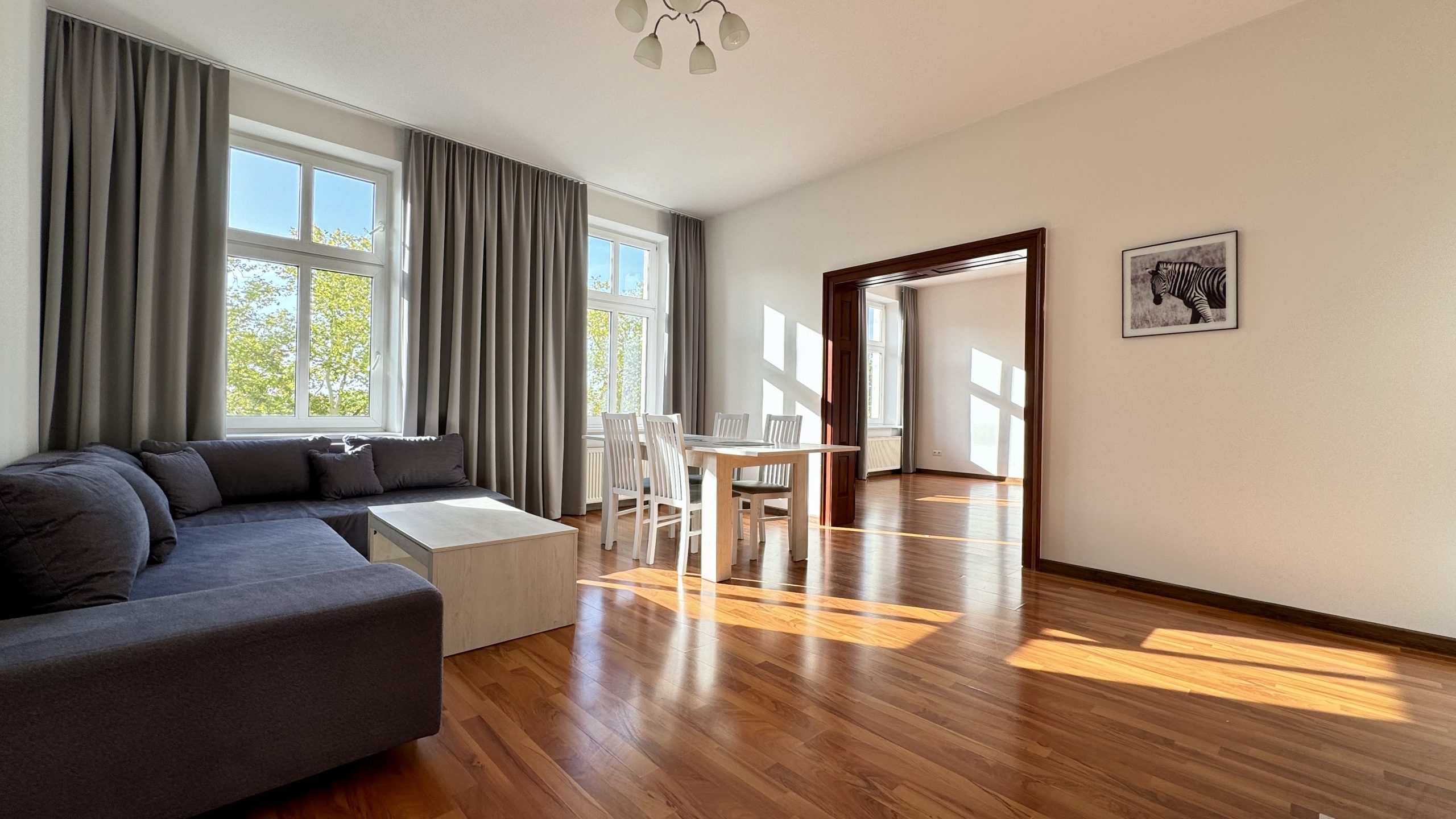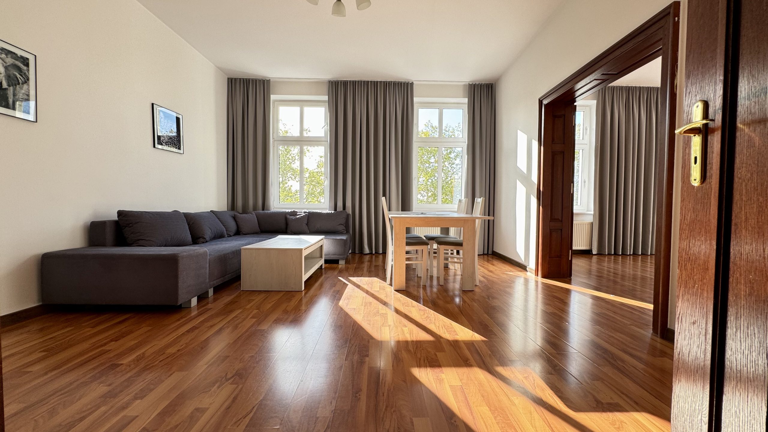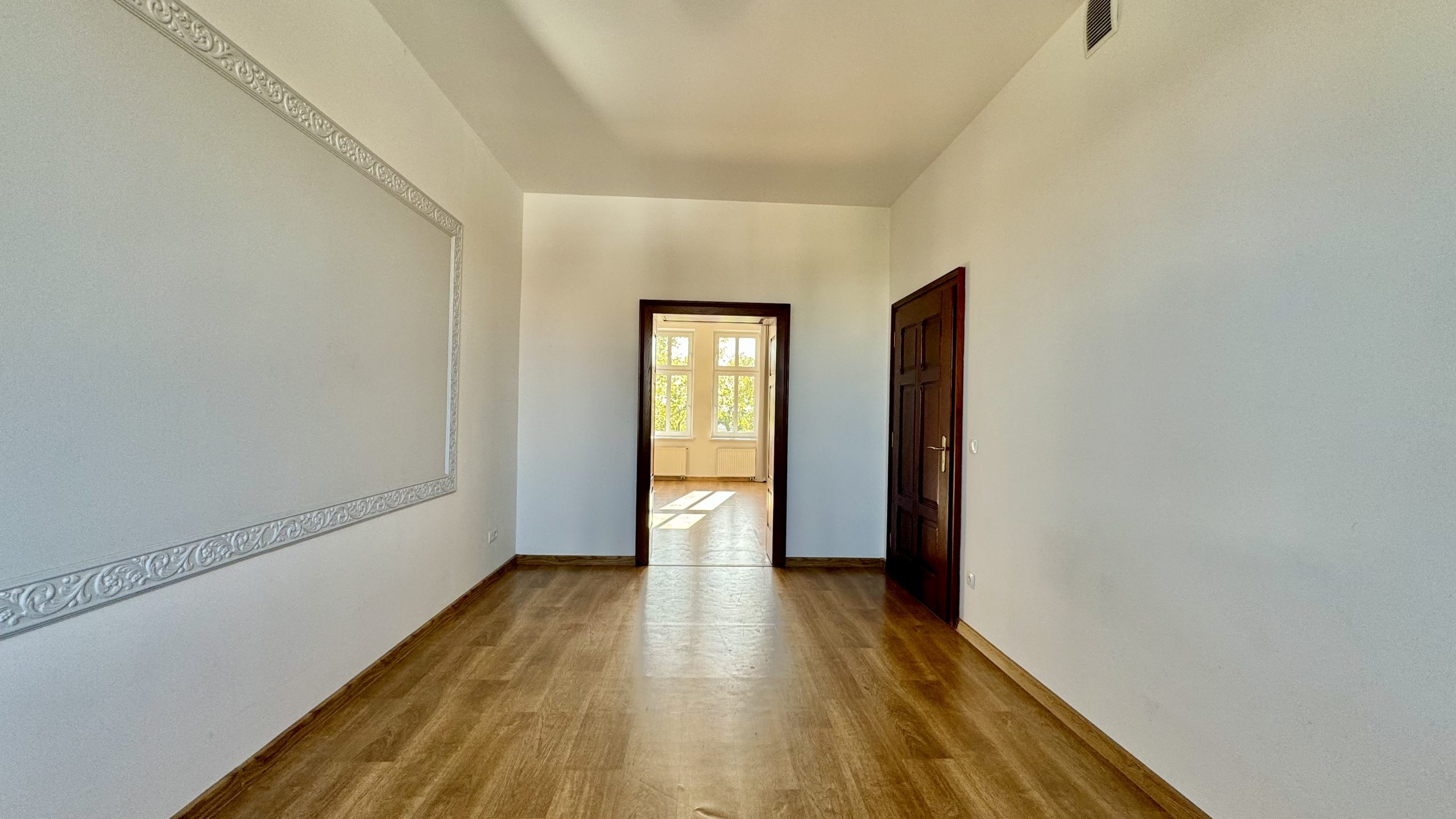 - wysokich okien, dzięki którym mieszkanie jest bardzo jasne i doskonale doświetlone,