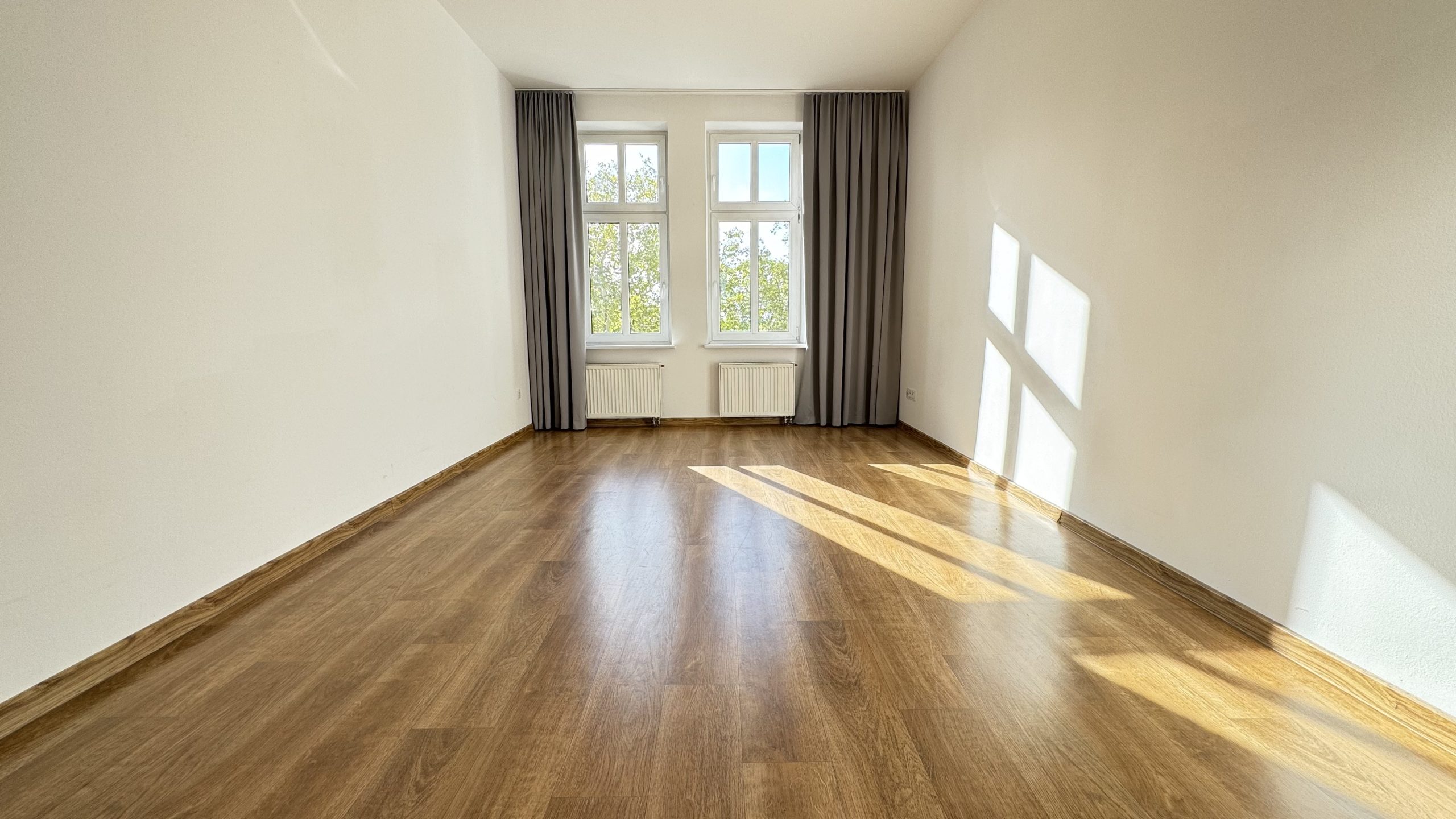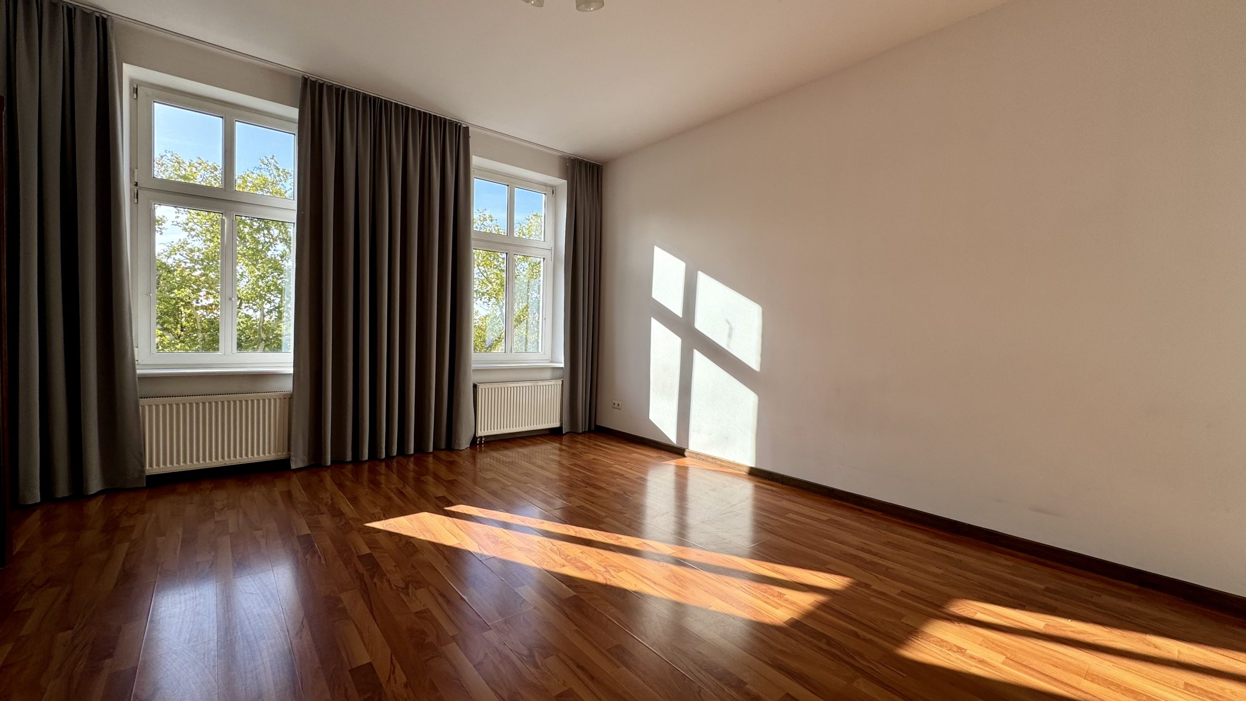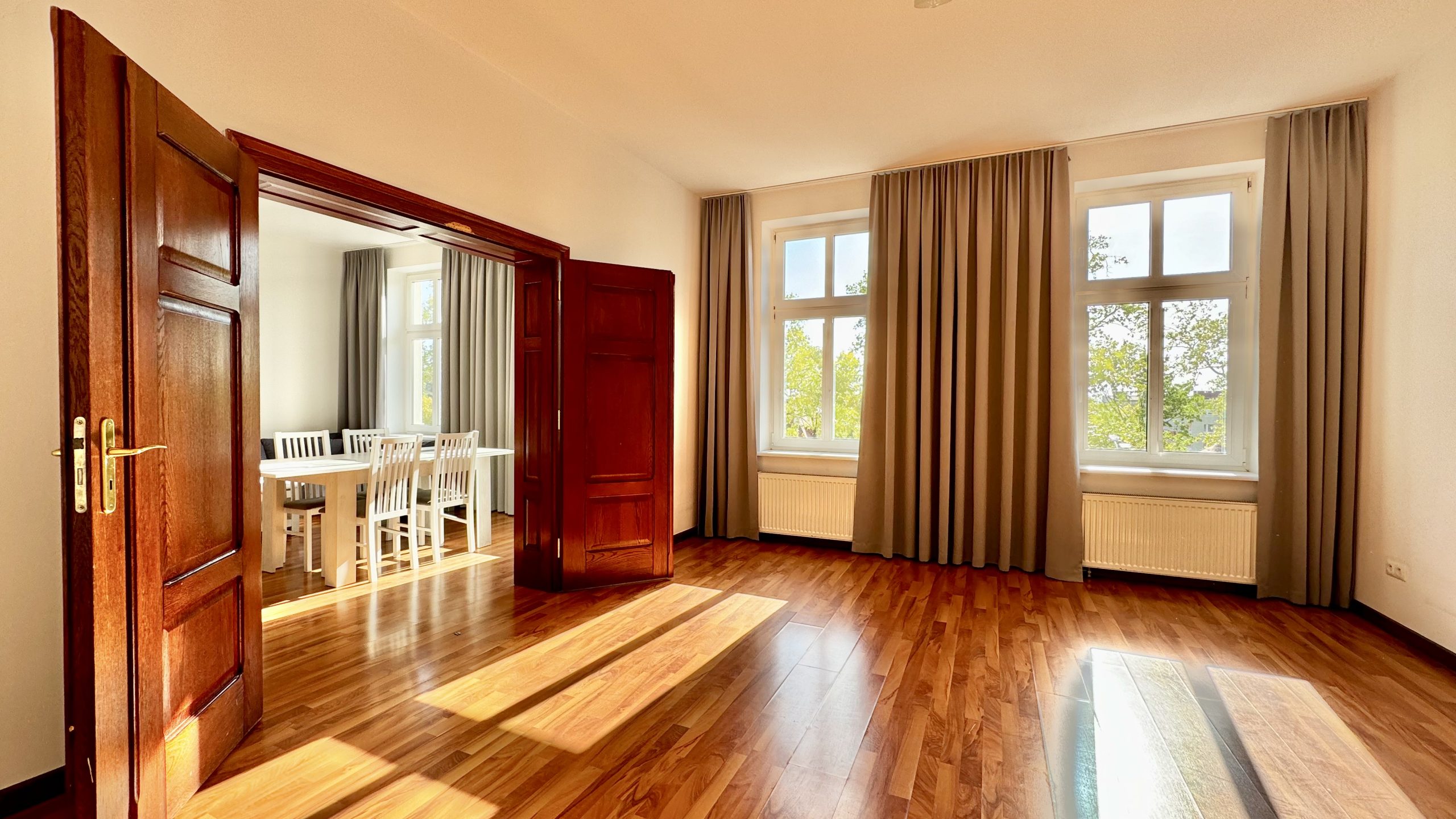 - wysokich okien, dzięki którym mieszkanie jest bardzo jasne i doskonale doświetlone,