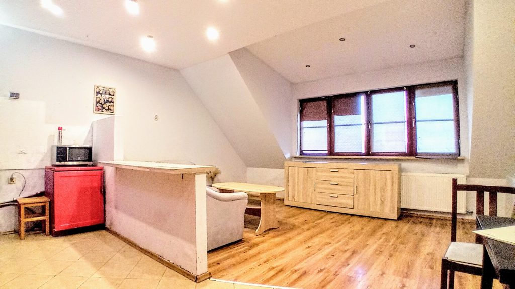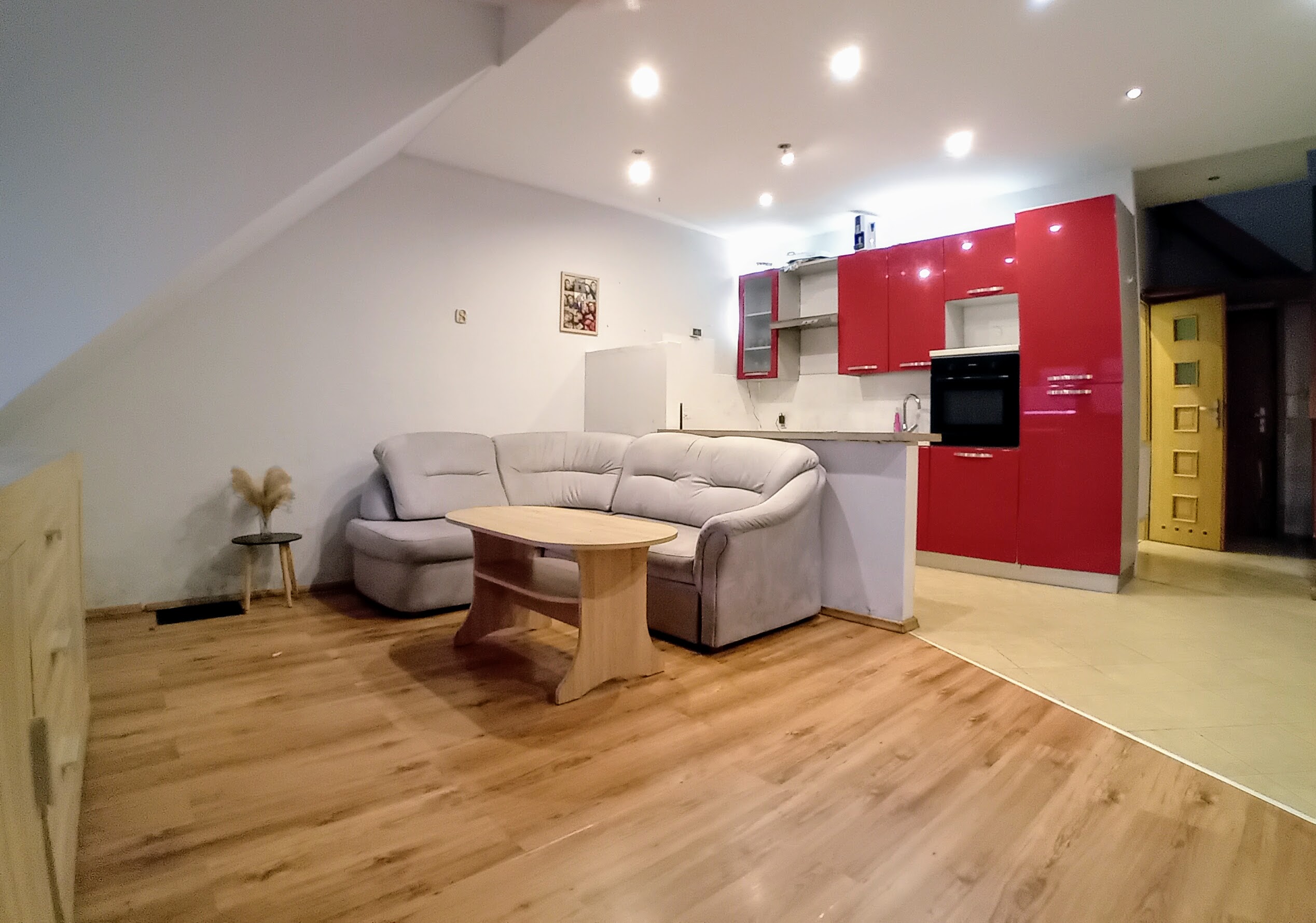 Liczba pokoi: 2 (salon z otwartą kuchnią + sypialnia na piętrze)