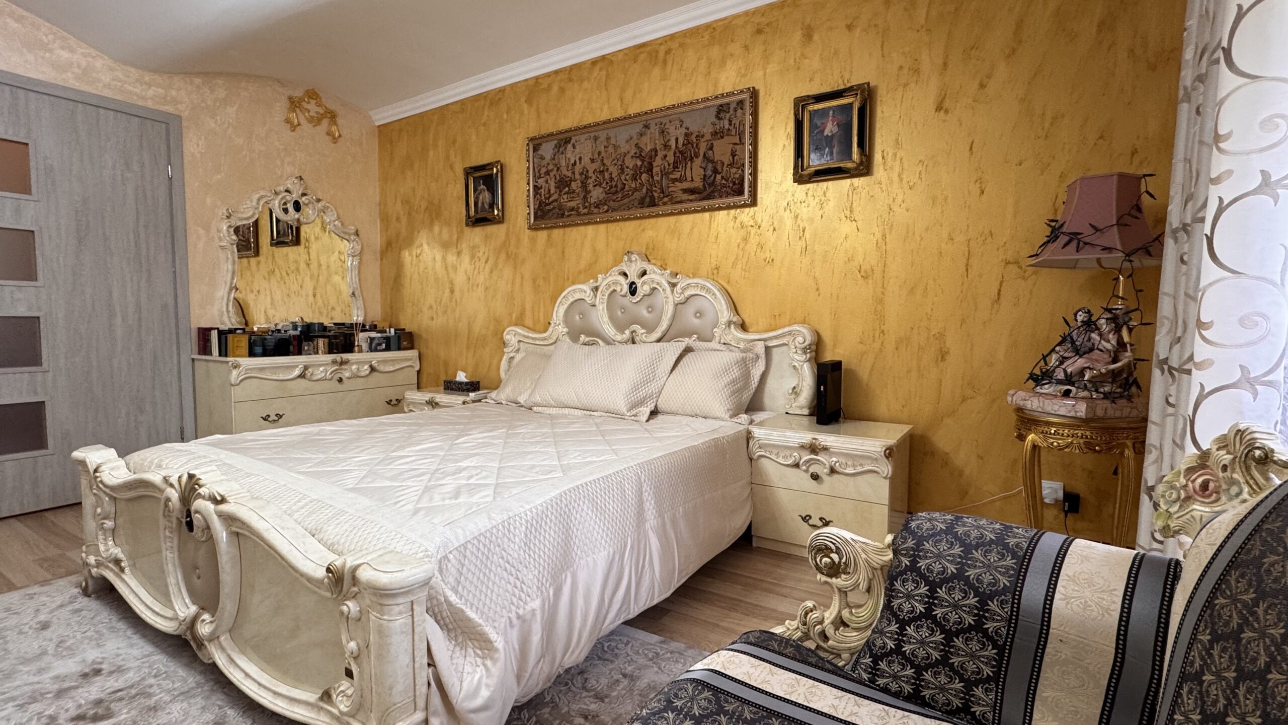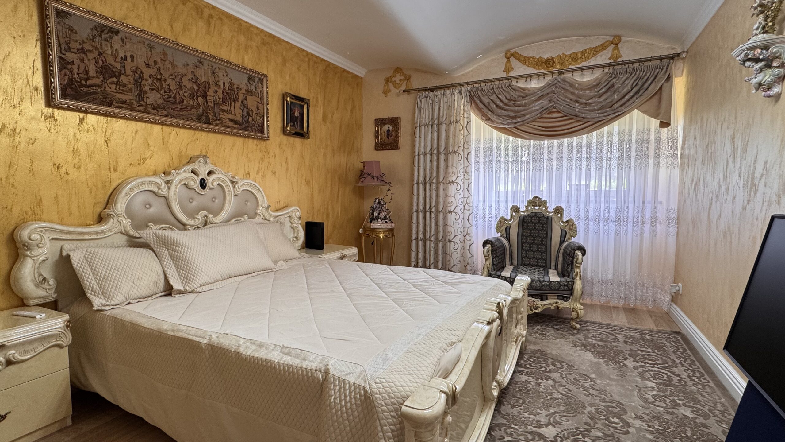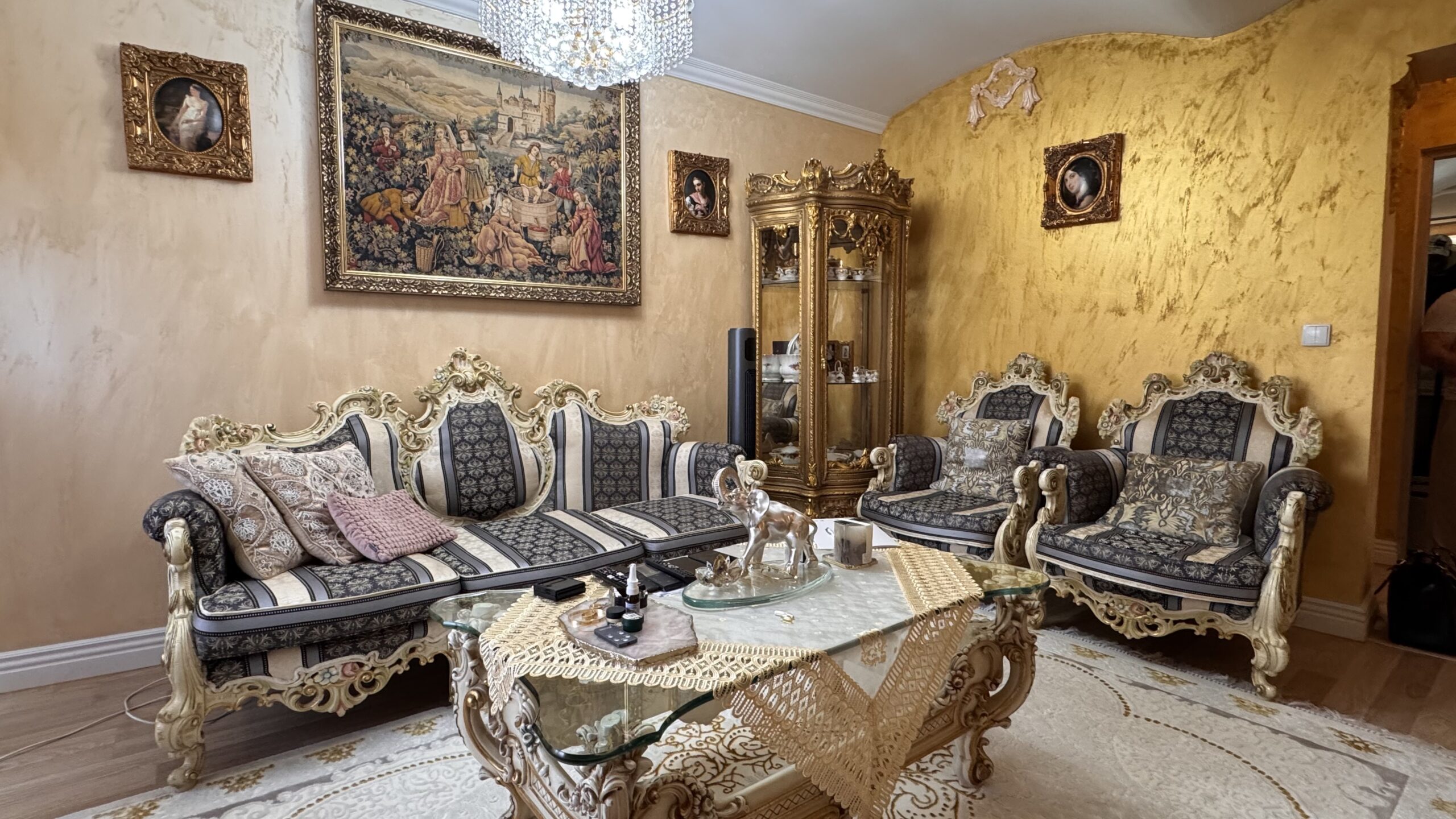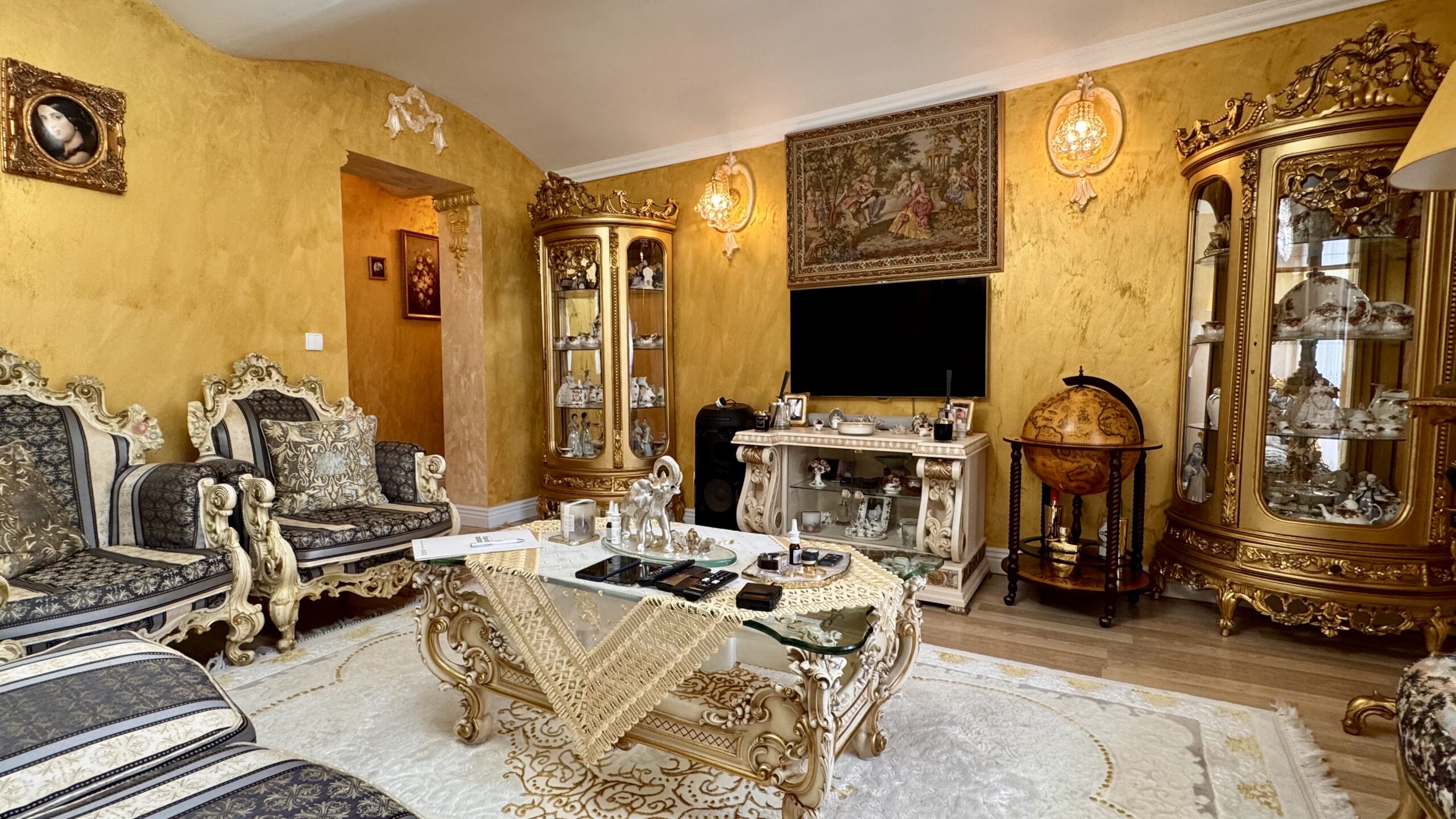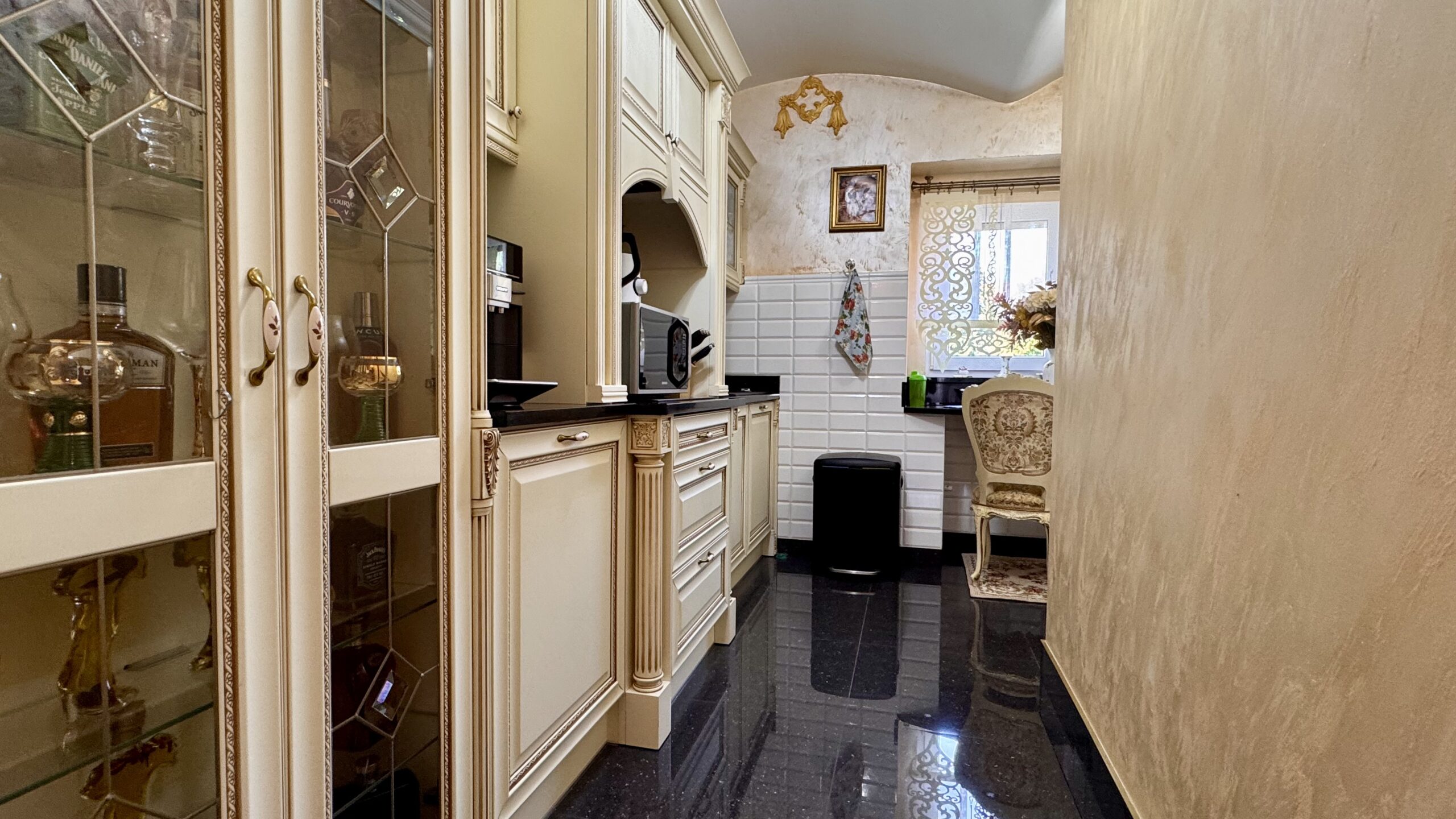 Cztery lata temu przeprowadzono generalny remont z użyciem materiałów wysokiej jakości, a dwa lata temu wykonano nową łazienkę. Wnętrza utrzymane są w eleganckim stylu glamour z pałacowym akcentem – pełnym dekoracji, złotych detali i wyrazistych form.