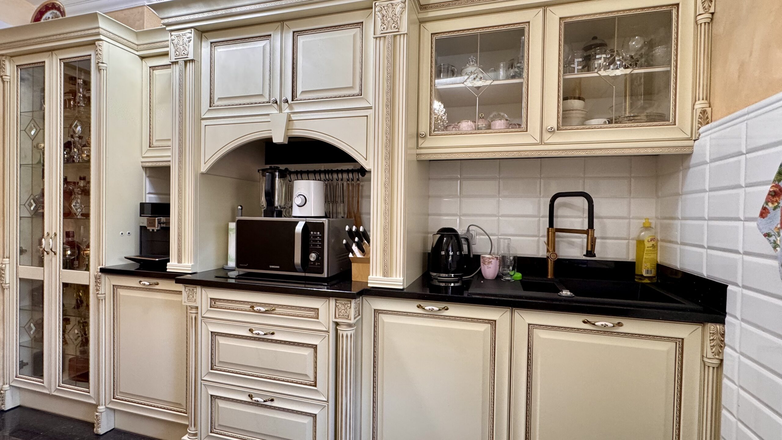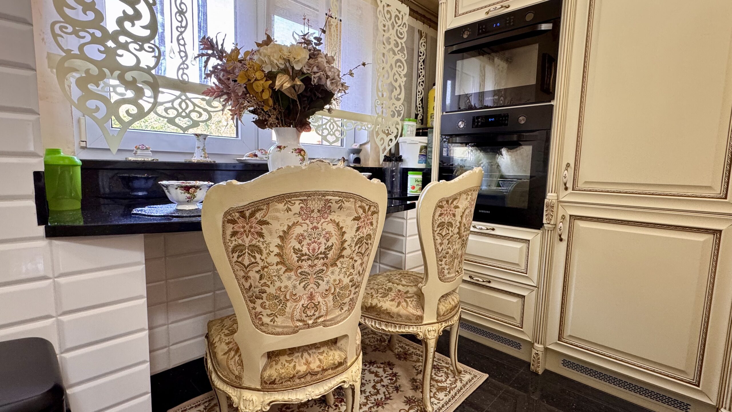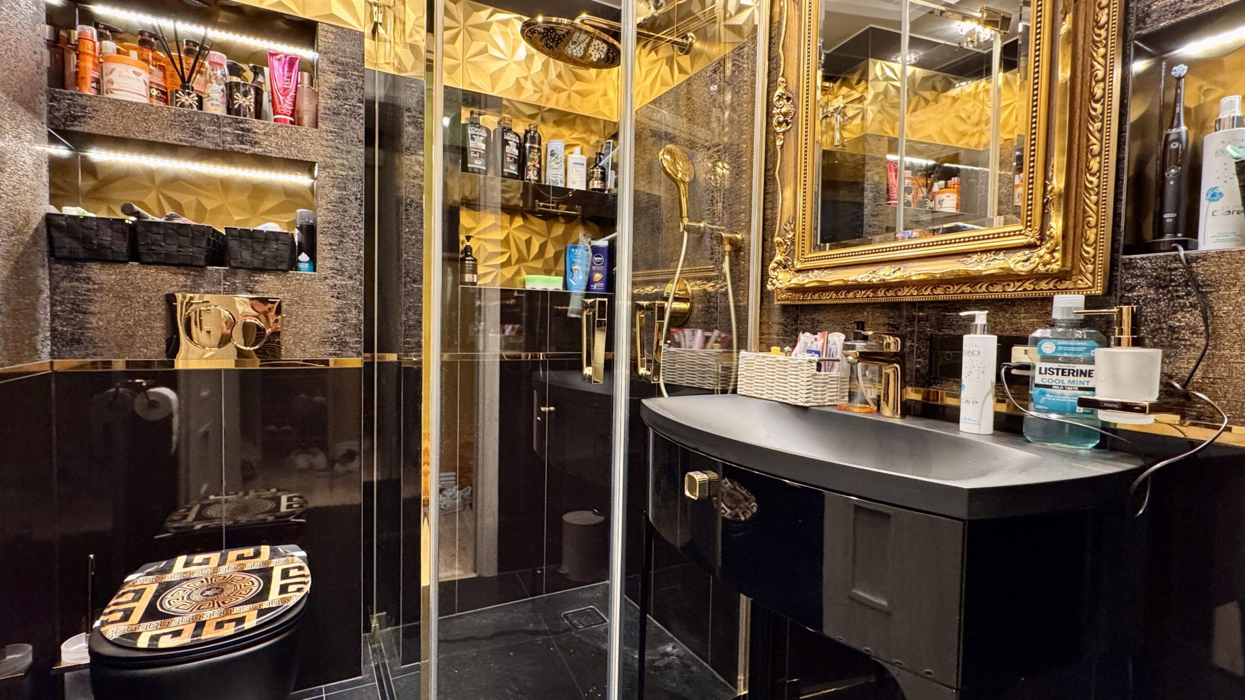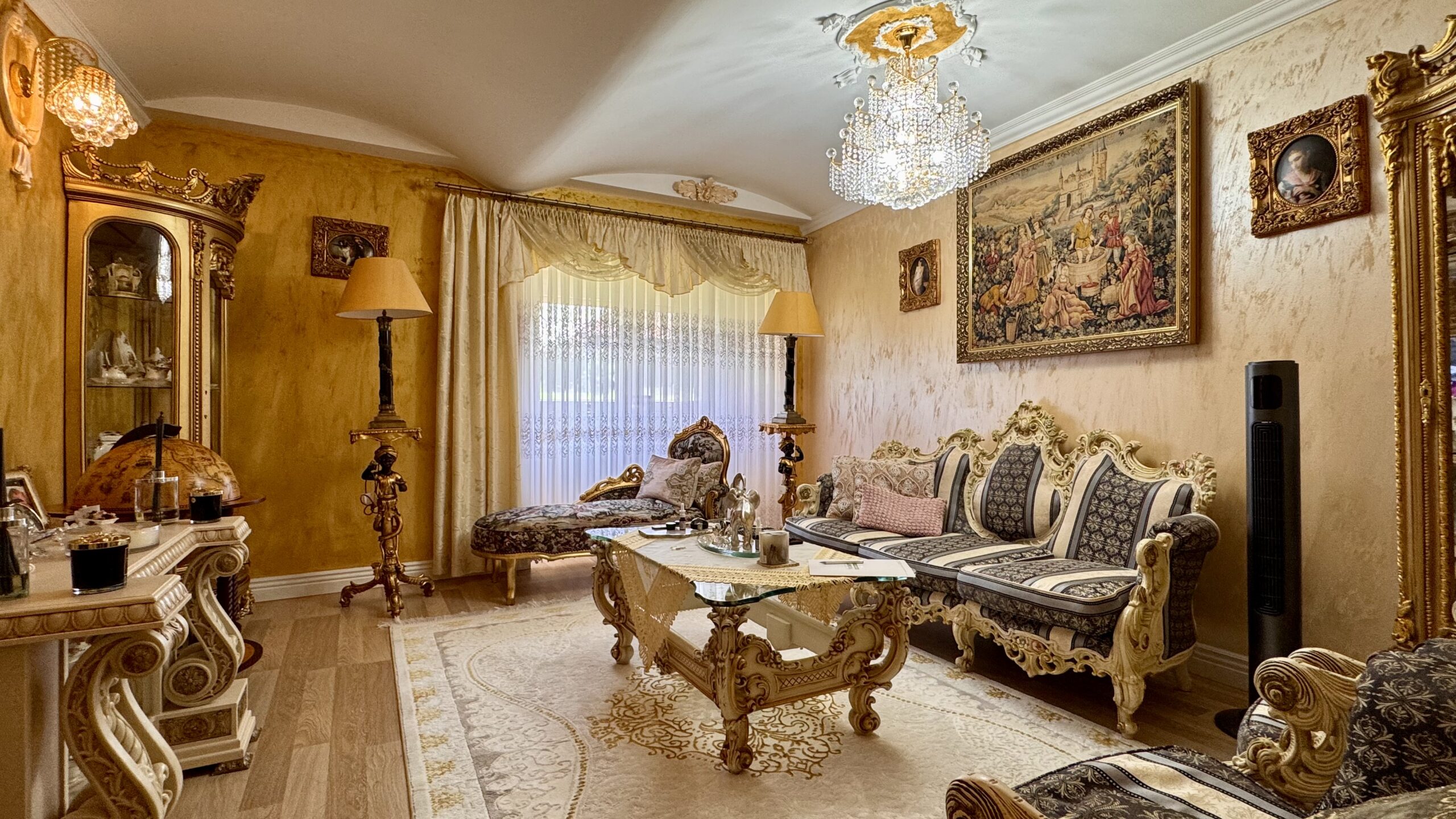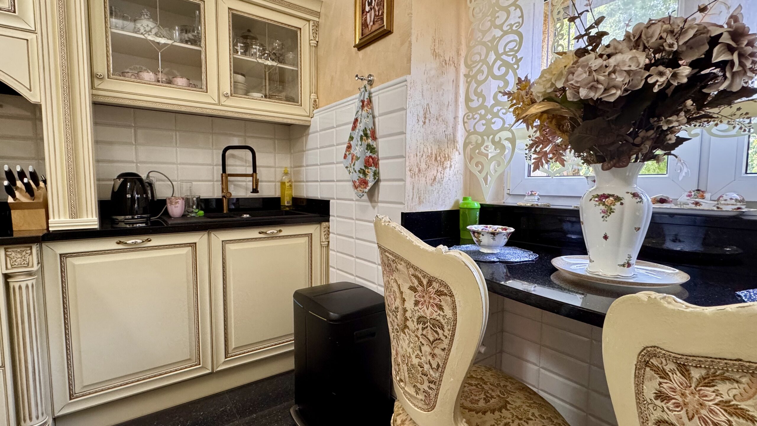 Cztery lata temu przeprowadzono generalny remont z użyciem materiałów wysokiej jakości, a dwa lata temu wykonano nową łazienkę. Wnętrza utrzymane są w eleganckim stylu glamour z pałacowym akcentem – pełnym dekoracji, złotych detali i wyrazistych form.