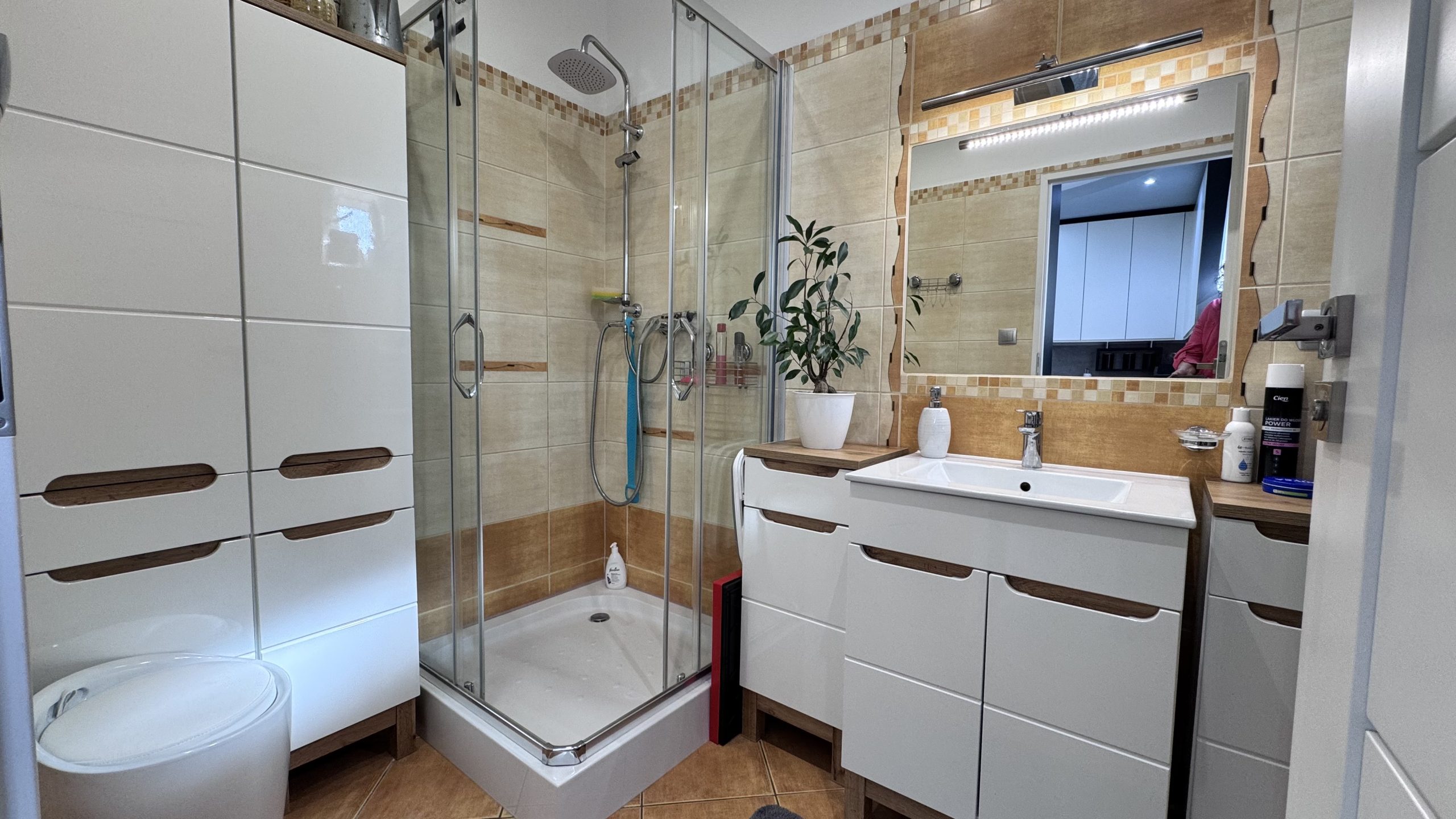 - • Łazienka – nowoczesna, z prysznicem • Oddzielne WC – wygodne rozwiązanie dla rodziny Dodatkowe udogodnienia: