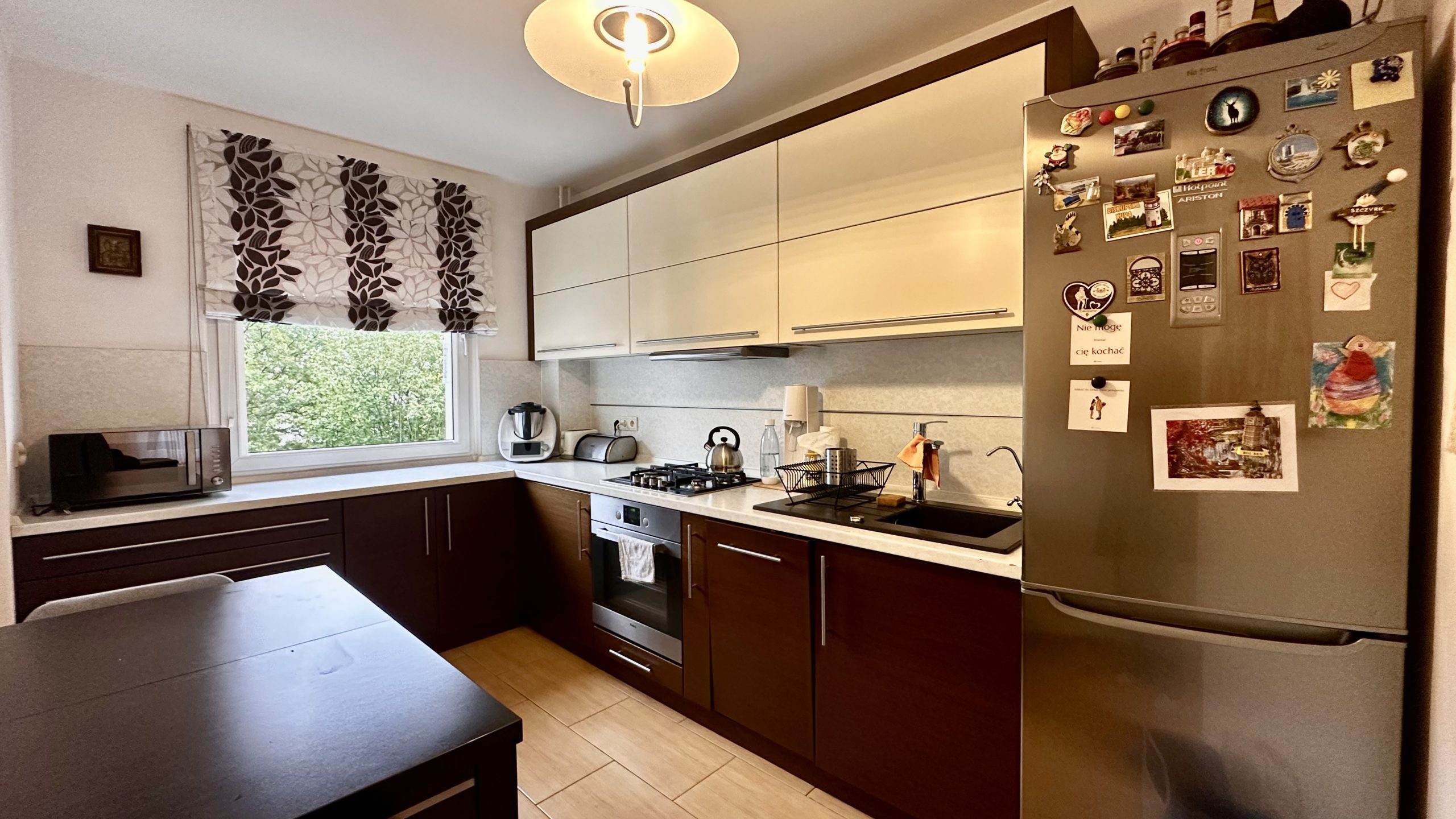 Dwie sypialnie – jedna z nich wyposażona w dużą szafę pod zabudowę. Kuchnia z oknem, dobrze doświetlona i funkcjonalna. Łazienka z prysznicem.