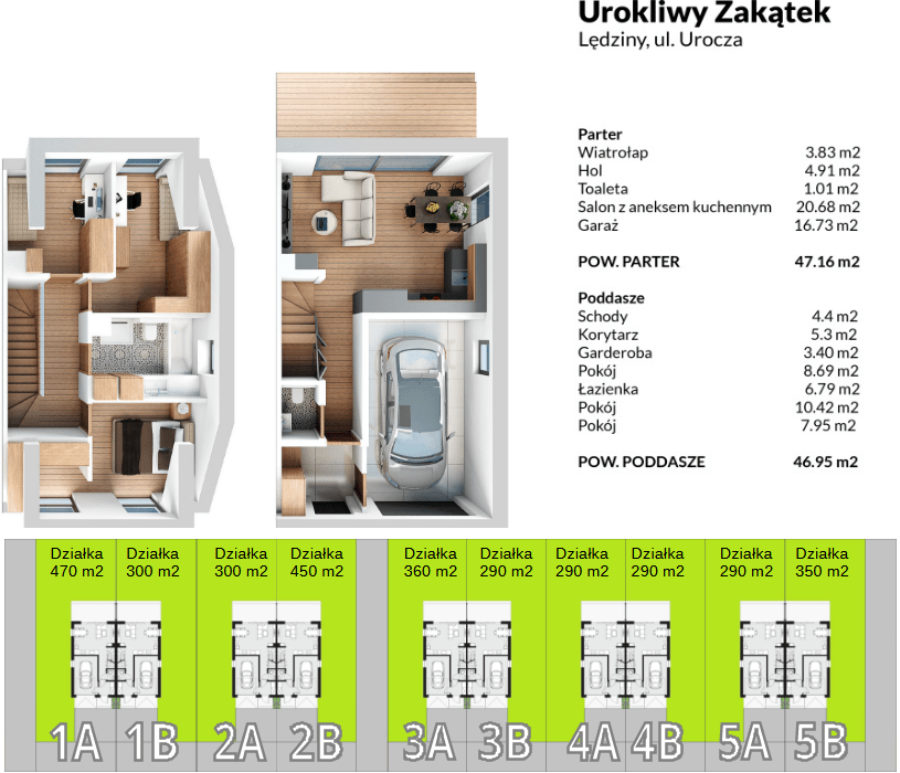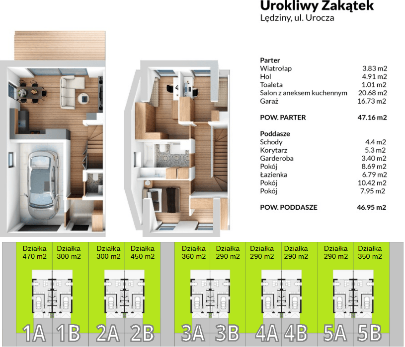Dostępnych będzie 10 niezależnych nieruchomości, każdy szczęśliwy nabywca wraz z domem nabędzie działkę o powierzchni 300 m2 – 500 m2.